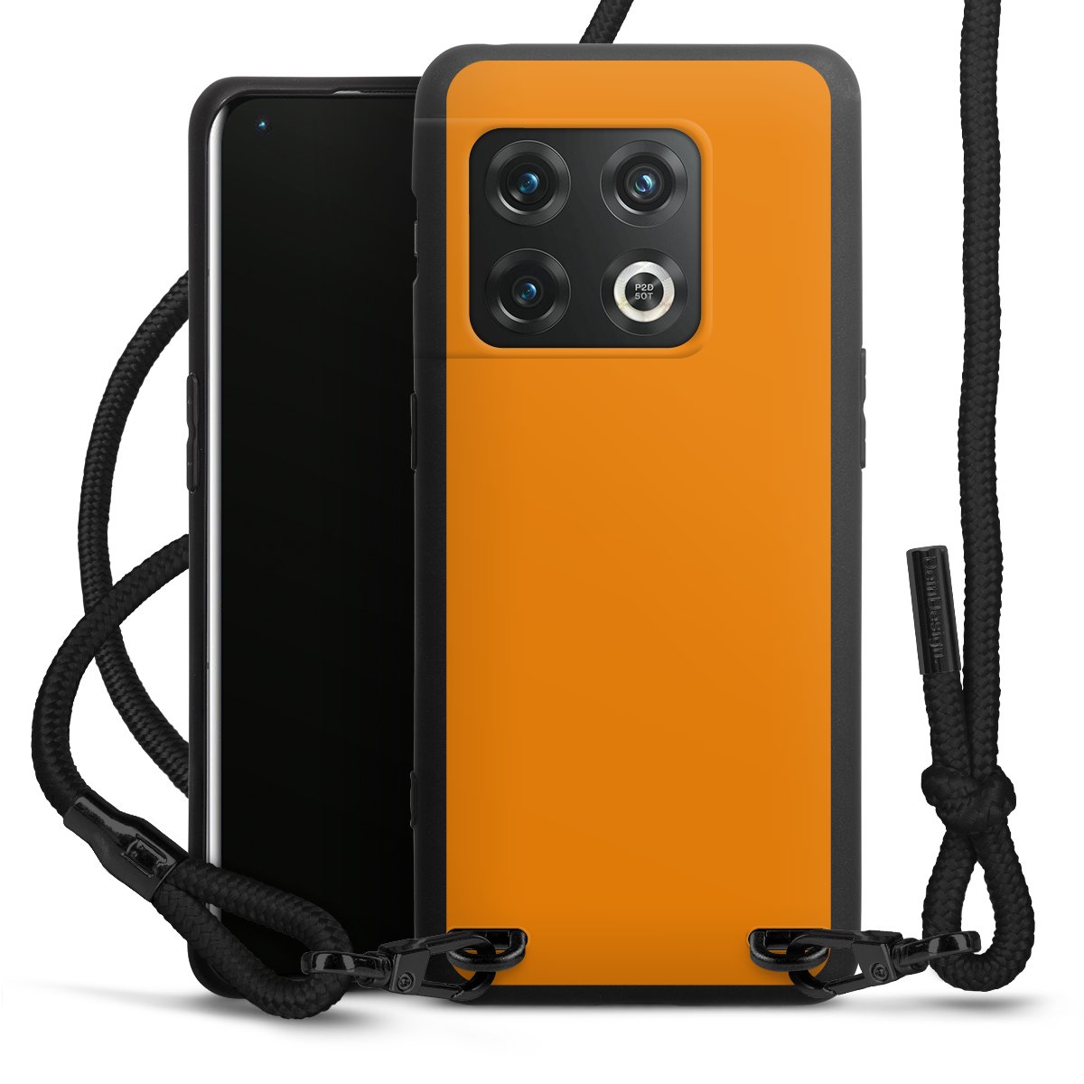 The matt black silicone case is made of flexible TPU (thermoplastic polyurethane) and offers robust protection. The durable, unbreakable material makes the cover flexible and dimensionally stable at the same time. The matte surface makes your design stand out more and is less susceptible to fingerprints and dirt. The stylish trend accessory fits comfortably in the hand and is perfectly complemented by the fabric (polyester) mobile phone strap. The braided fabric strap is approx. 1.70 metres long with a diameter of approx. 0.5 cm. Due to the special knotting technique, the length of the strap can be adjusted by simply pulling it, so that you can adapt it individually to your wishes. The practical case to wear around your neck is available with the fabric strap in black. As a little icing on the cake, we have provided the strap with a chic metal fastener in matt black. The strap is securely fastened to the case with loops made of high-quality genuine leather and press studs. The ends of the fabric strap are covered with metallic end caps and thus protected from fraying.