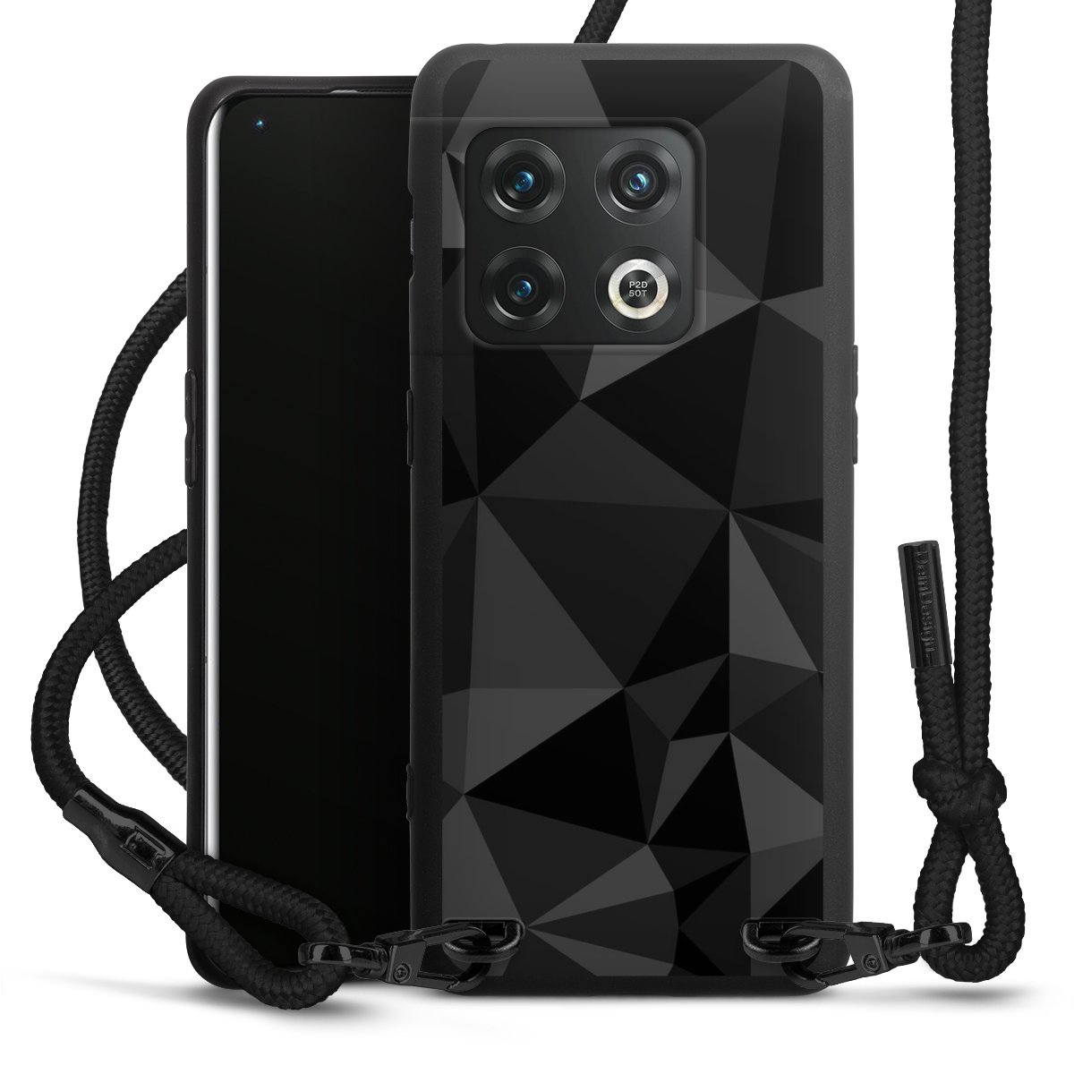 The matt black silicone case is made of flexible TPU (thermoplastic polyurethane) and offers robust protection. The durable, unbreakable material makes the cover flexible and dimensionally stable at the same time. The matte surface makes your design stand out more and is less susceptible to fingerprints and dirt. The stylish trend accessory fits comfortably in the hand and is perfectly complemented by the fabric (polyester) mobile phone strap. The braided fabric strap is approx. 1.70 metres long with a diameter of approx. 0.5 cm. Due to the special knotting technique, the length of the strap can be adjusted by simply pulling it, so that you can adapt it individually to your wishes. The practical case to wear around your neck is available with the fabric strap in black. As a little icing on the cake, we have provided the strap with a chic metal fastener in matt black. The strap is securely fastened to the case with loops made of high-quality genuine leather and press studs. The ends of the fabric strap are covered with metallic end caps and thus protected from fraying.