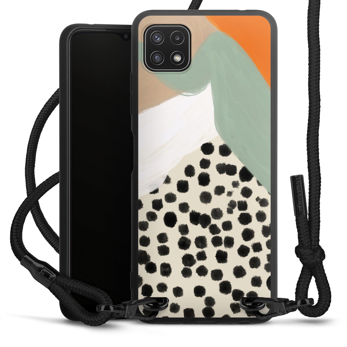 We use the solid direct print process for this phone case, which is why the print area only covers the back and the edge remains unprinted. The case to wear around your neck can be ordered unprinted, fully printed, or partially printed. For your design, either choose one of our exclusive shop motifs or get creative and create your own design, for example with photos and overlays. Design your own personal trend accessory and make an individual statement on the streets!