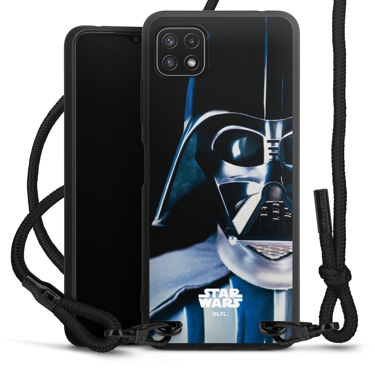 The matt black silicone case is made of flexible TPU (thermoplastic polyurethane) and offers robust protection. The durable, unbreakable material makes the cover flexible and dimensionally stable at the same time. The matte surface makes your design stand out more and is less susceptible to fingerprints and dirt. The stylish trend accessory fits comfortably in the hand and is perfectly complemented by the fabric (polyester) mobile phone strap. The braided fabric strap is approx. 1.70 metres long with a diameter of approx. 0.5 cm. Due to the special knotting technique, the length of the strap can be adjusted by simply pulling it, so that you can adapt it individually to your wishes. The practical case to wear around your neck is available with the fabric strap in black. As a little icing on the cake, we have provided the strap with a chic metal fastener in matt black. The strap is securely fastened to the case with loops made of high-quality genuine leather and press studs. The ends of the fabric strap are covered with metallic end caps and thus protected from fraying.