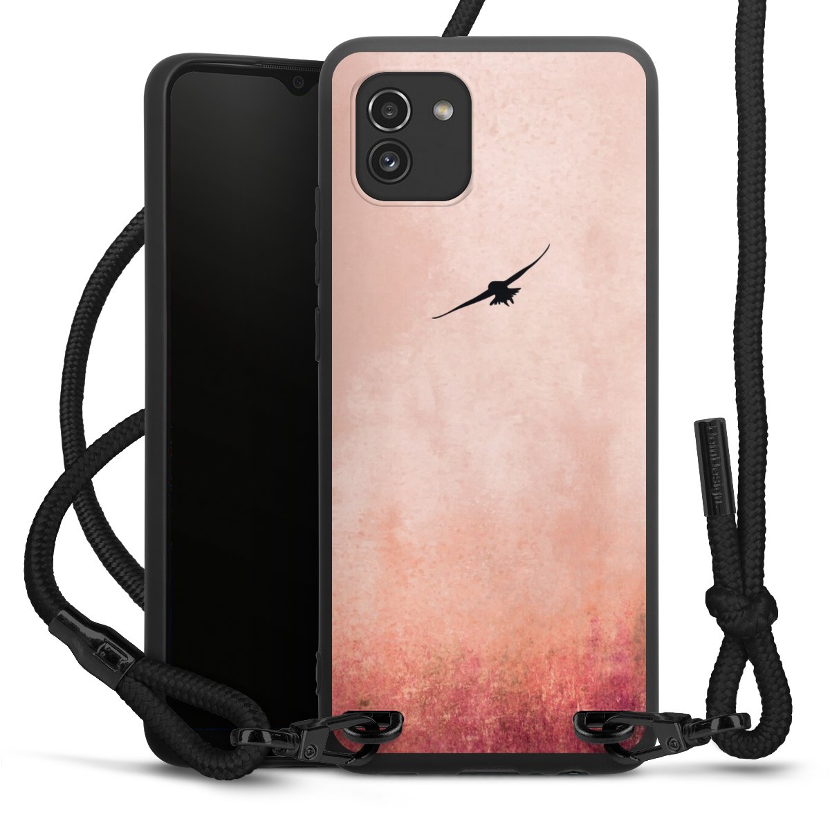 We use the solid direct print process for this phone case, which is why the print area only covers the back and the edge remains unprinted. The case to wear around your neck can be ordered unprinted, fully printed, or partially printed. For your design, either choose one of our exclusive shop motifs or get creative and create your own design, for example with photos and overlays. Design your own personal trend accessory and make an individual statement on the streets!