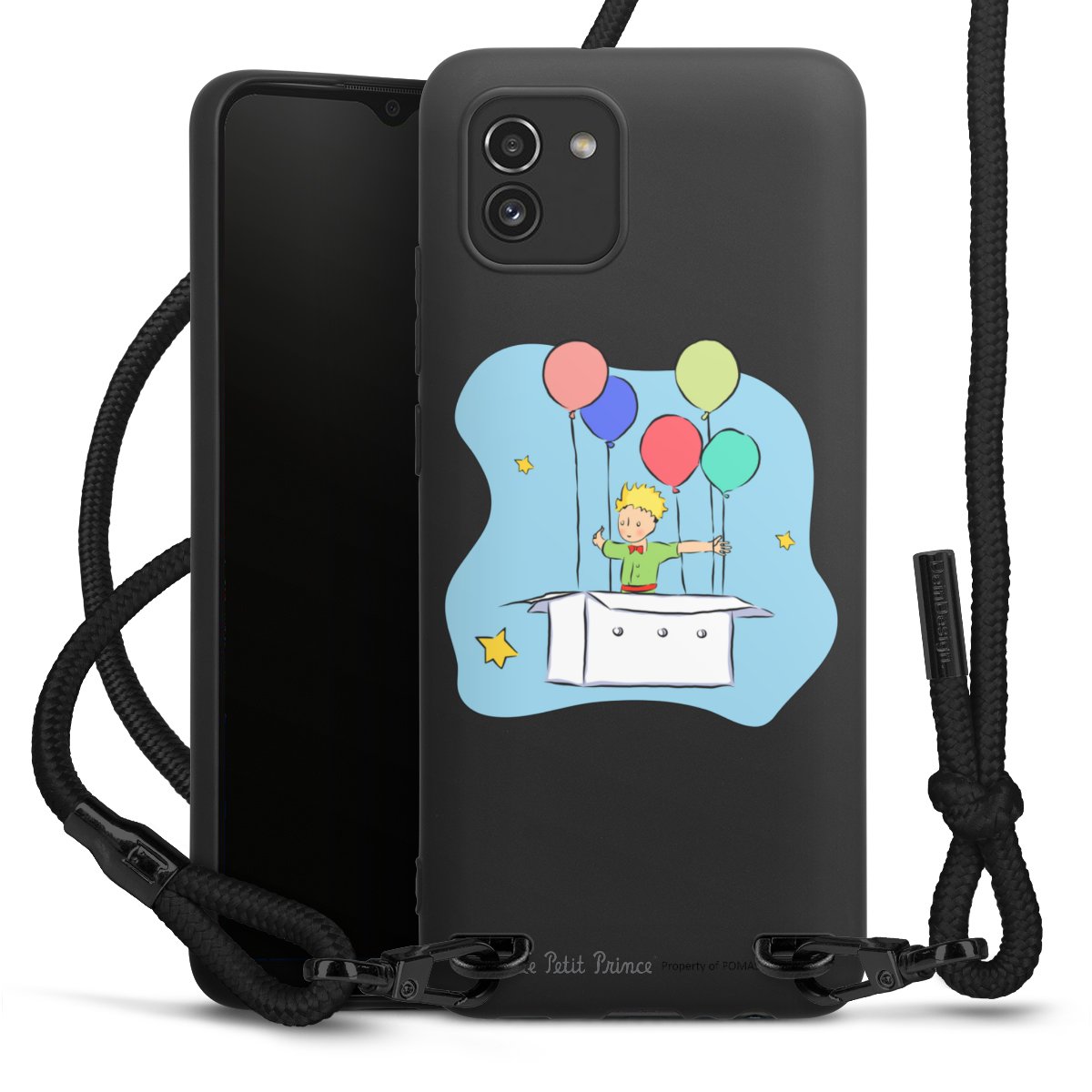 The matt black silicone case is made of flexible TPU (thermoplastic polyurethane) and offers robust protection. The durable, unbreakable material makes the cover flexible and dimensionally stable at the same time. The matte surface makes your design stand out more and is less susceptible to fingerprints and dirt. The stylish trend accessory fits comfortably in the hand and is perfectly complemented by the fabric (polyester) mobile phone strap. The braided fabric strap is approx. 1.70 metres long with a diameter of approx. 0.5 cm. Due to the special knotting technique, the length of the strap can be adjusted by simply pulling it, so that you can adapt it individually to your wishes. The practical case to wear around your neck is available with the fabric strap in black. As a little icing on the cake, we have provided the strap with a chic metal fastener in matt black. The strap is securely fastened to the case with loops made of high-quality genuine leather and press studs. The ends of the fabric strap are covered with metallic end caps and thus protected from fraying.