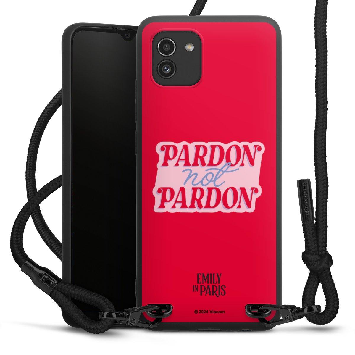 The matt black silicone case is made of flexible TPU (thermoplastic polyurethane) and offers robust protection. The durable, unbreakable material makes the cover flexible and dimensionally stable at the same time. The matte surface makes your design stand out more and is less susceptible to fingerprints and dirt. The stylish trend accessory fits comfortably in the hand and is perfectly complemented by the fabric (polyester) mobile phone strap. The braided fabric strap is approx. 1.70 metres long with a diameter of approx. 0.5 cm. Due to the special knotting technique, the length of the strap can be adjusted by simply pulling it, so that you can adapt it individually to your wishes. The practical case to wear around your neck is available with the fabric strap in black. As a little icing on the cake, we have provided the strap with a chic metal fastener in matt black. The strap is securely fastened to the case with loops made of high-quality genuine leather and press studs. The ends of the fabric strap are covered with metallic end caps and thus protected from fraying.