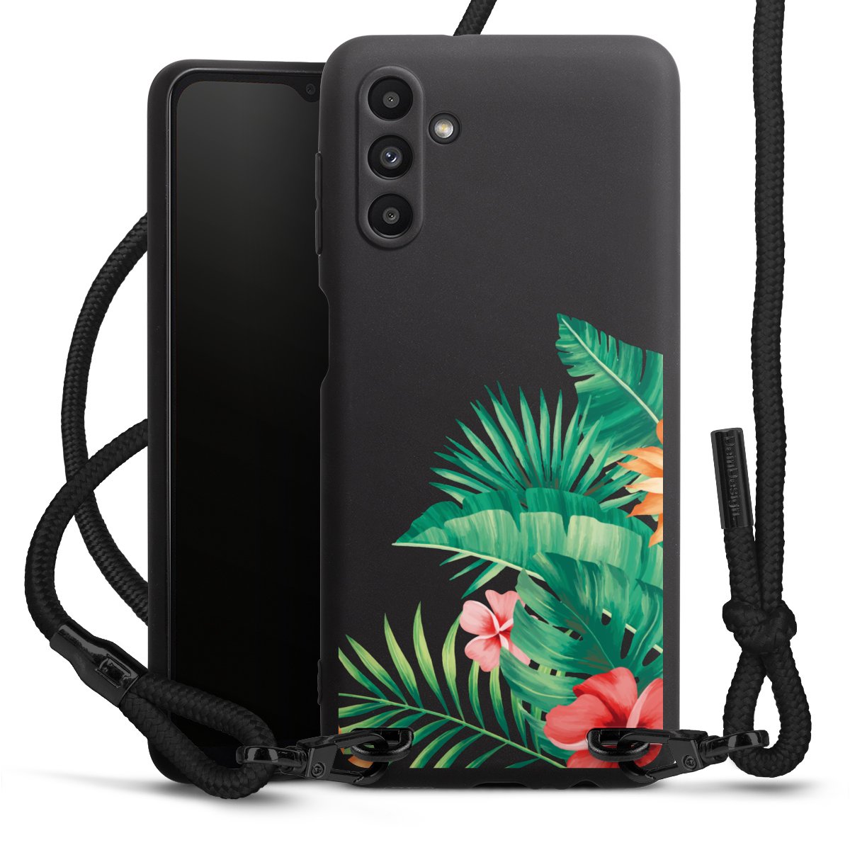 We use the solid direct print process for this phone case, which is why the print area only covers the back and the edge remains unprinted. The case to wear around your neck can be ordered unprinted, fully printed, or partially printed. For your design, either choose one of our exclusive shop motifs or get creative and create your own design, for example with photos and overlays. Design your own personal trend accessory and make an individual statement on the streets!
