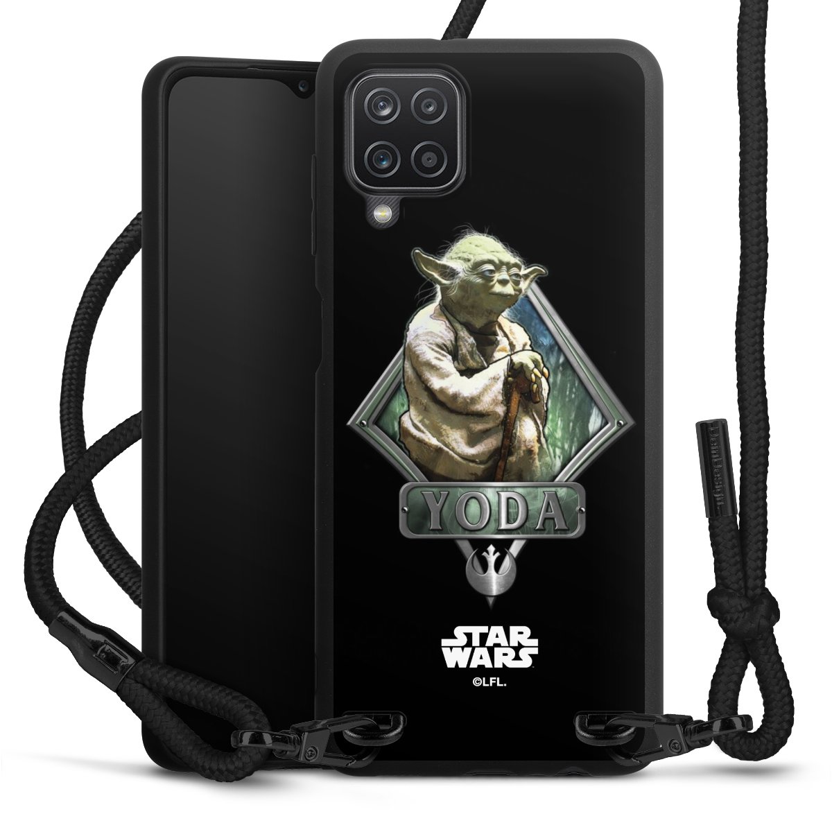 Pure Black: Phone case, fabric strap and metal details in stylish matt black.