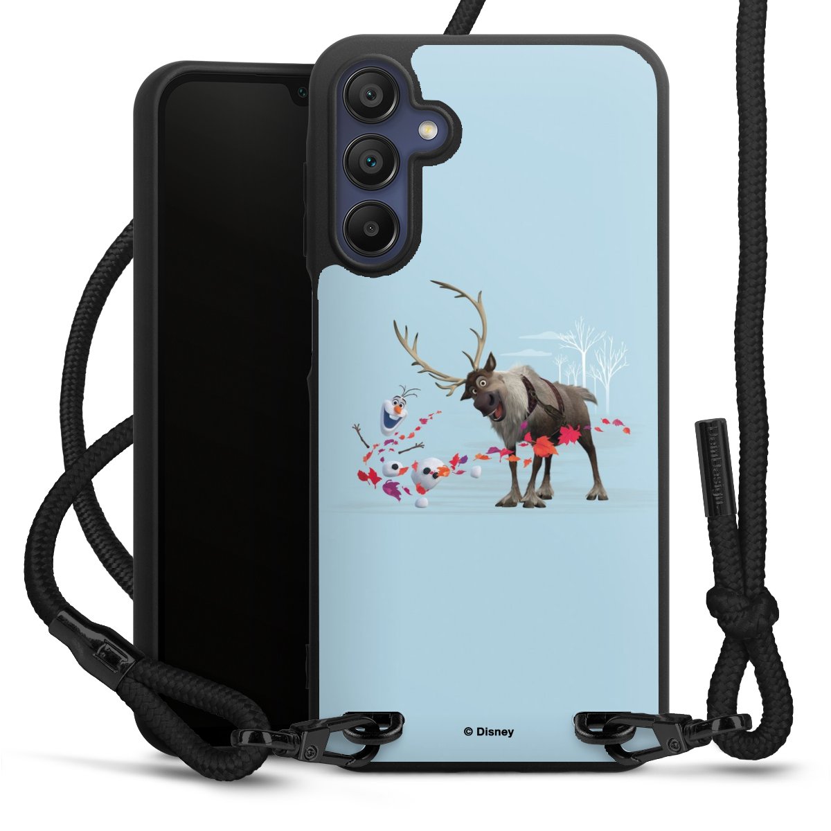 The matt black silicone case is made of flexible TPU (thermoplastic polyurethane) and offers robust protection. The durable, unbreakable material makes the cover flexible and dimensionally stable at the same time. The matte surface makes your design stand out more and is less susceptible to fingerprints and dirt. The stylish trend accessory fits comfortably in the hand and is perfectly complemented by the fabric (polyester) mobile phone strap. The braided fabric strap is approx. 1.70 metres long with a diameter of approx. 0.5 cm. Due to the special knotting technique, the length of the strap can be adjusted by simply pulling it, so that you can adapt it individually to your wishes. The practical case to wear around your neck is available with the fabric strap in black. As a little icing on the cake, we have provided the strap with a chic metal fastener in matt black. The strap is securely fastened to the case with loops made of high-quality genuine leather and press studs. The ends of the fabric strap are covered with metallic end caps and thus protected from fraying.