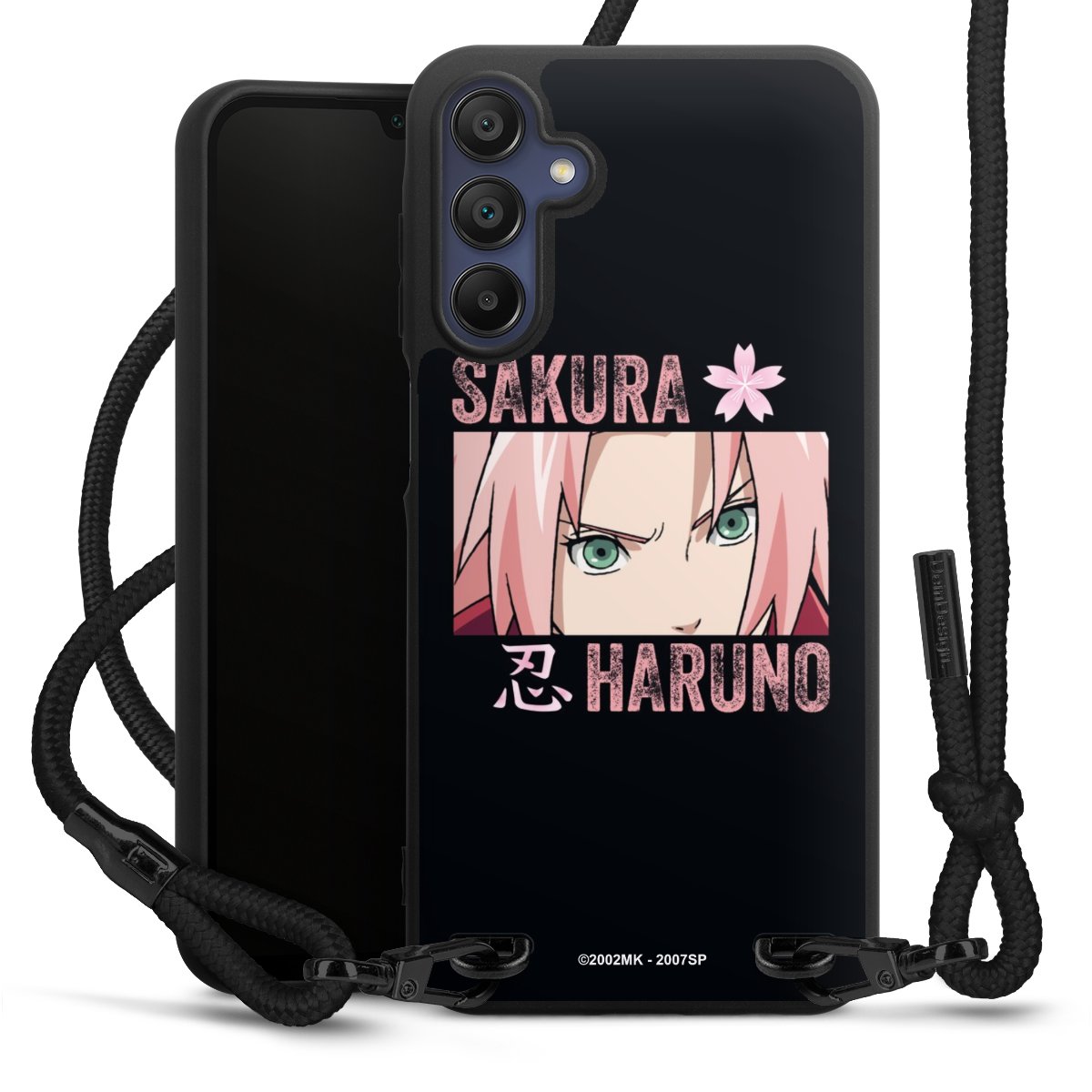 The matt black silicone case is made of flexible TPU (thermoplastic polyurethane) and offers robust protection. The durable, unbreakable material makes the cover flexible and dimensionally stable at the same time. The matte surface makes your design stand out more and is less susceptible to fingerprints and dirt. The stylish trend accessory fits comfortably in the hand and is perfectly complemented by the fabric (polyester) mobile phone strap. The braided fabric strap is approx. 1.70 metres long with a diameter of approx. 0.5 cm. Due to the special knotting technique, the length of the strap can be adjusted by simply pulling it, so that you can adapt it individually to your wishes. The practical case to wear around your neck is available with the fabric strap in black. As a little icing on the cake, we have provided the strap with a chic metal fastener in matt black. The strap is securely fastened to the case with loops made of high-quality genuine leather and press studs. The ends of the fabric strap are covered with metallic end caps and thus protected from fraying.