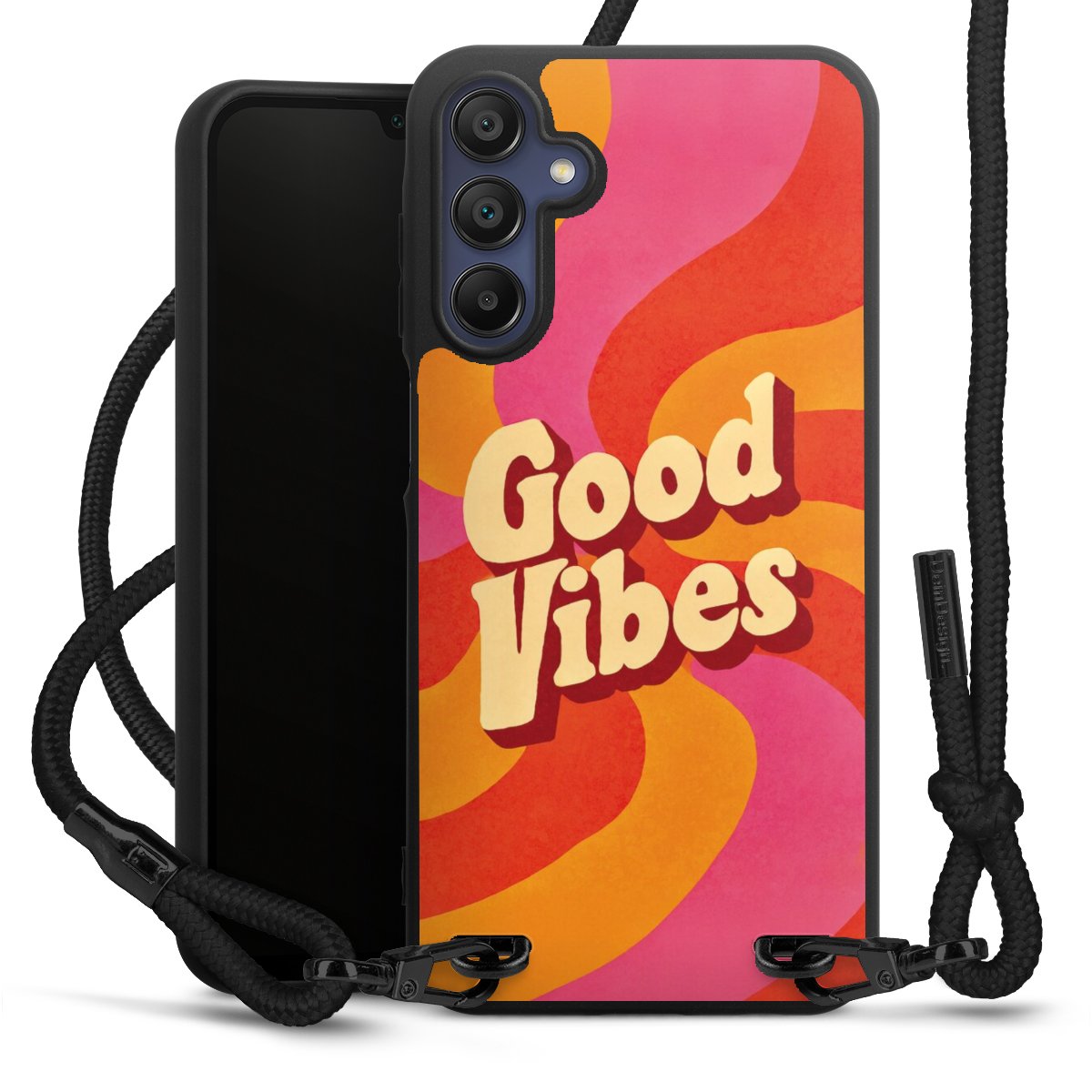 We use the solid direct print process for this phone case, which is why the print area only covers the back and the edge remains unprinted. The case to wear around your neck can be ordered unprinted, fully printed, or partially printed. For your design, either choose one of our exclusive shop motifs or get creative and create your own design, for example with photos and overlays. Design your own personal trend accessory and make an individual statement on the streets!