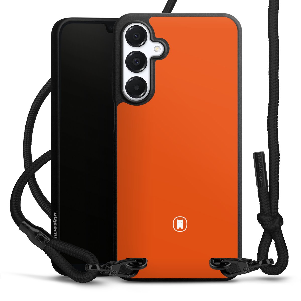 The matt black silicone case is made of flexible TPU (thermoplastic polyurethane) and offers robust protection. The durable, unbreakable material makes the cover flexible and dimensionally stable at the same time. The matte surface makes your design stand out more and is less susceptible to fingerprints and dirt. The stylish trend accessory fits comfortably in the hand and is perfectly complemented by the fabric (polyester) mobile phone strap. The braided fabric strap is approx. 1.70 metres long with a diameter of approx. 0.5 cm. Due to the special knotting technique, the length of the strap can be adjusted by simply pulling it, so that you can adapt it individually to your wishes. The practical case to wear around your neck is available with the fabric strap in black. As a little icing on the cake, we have provided the strap with a chic metal fastener in matt black. The strap is securely fastened to the case with loops made of high-quality genuine leather and press studs. The ends of the fabric strap are covered with metallic end caps and thus protected from fraying.