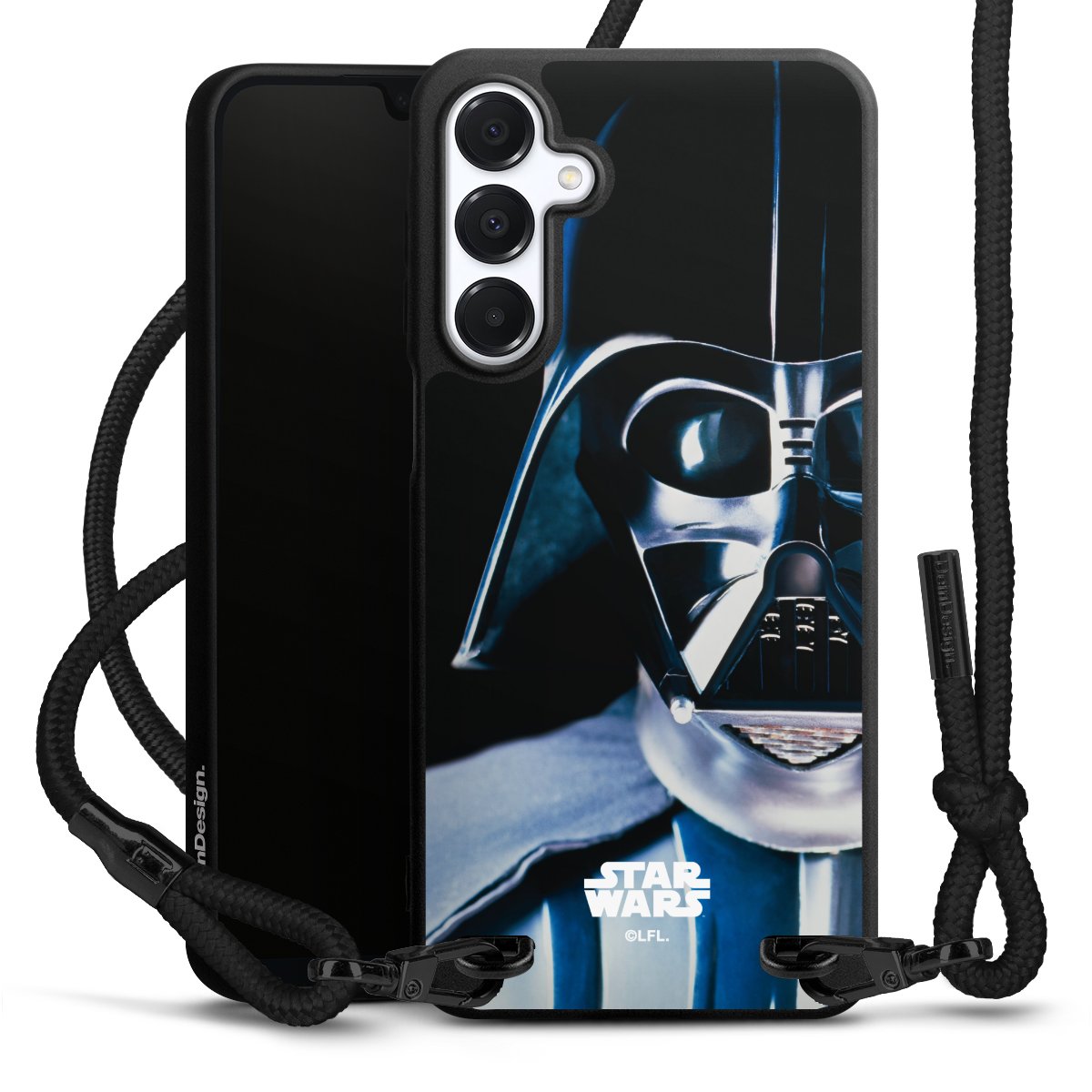 The matt black silicone case is made of flexible TPU (thermoplastic polyurethane) and offers robust protection. The durable, unbreakable material makes the cover flexible and dimensionally stable at the same time. The matte surface makes your design stand out more and is less susceptible to fingerprints and dirt. The stylish trend accessory fits comfortably in the hand and is perfectly complemented by the fabric (polyester) mobile phone strap. The braided fabric strap is approx. 1.70 metres long with a diameter of approx. 0.5 cm. Due to the special knotting technique, the length of the strap can be adjusted by simply pulling it, so that you can adapt it individually to your wishes. The practical case to wear around your neck is available with the fabric strap in black. As a little icing on the cake, we have provided the strap with a chic metal fastener in matt black. The strap is securely fastened to the case with loops made of high-quality genuine leather and press studs. The ends of the fabric strap are covered with metallic end caps and thus protected from fraying.