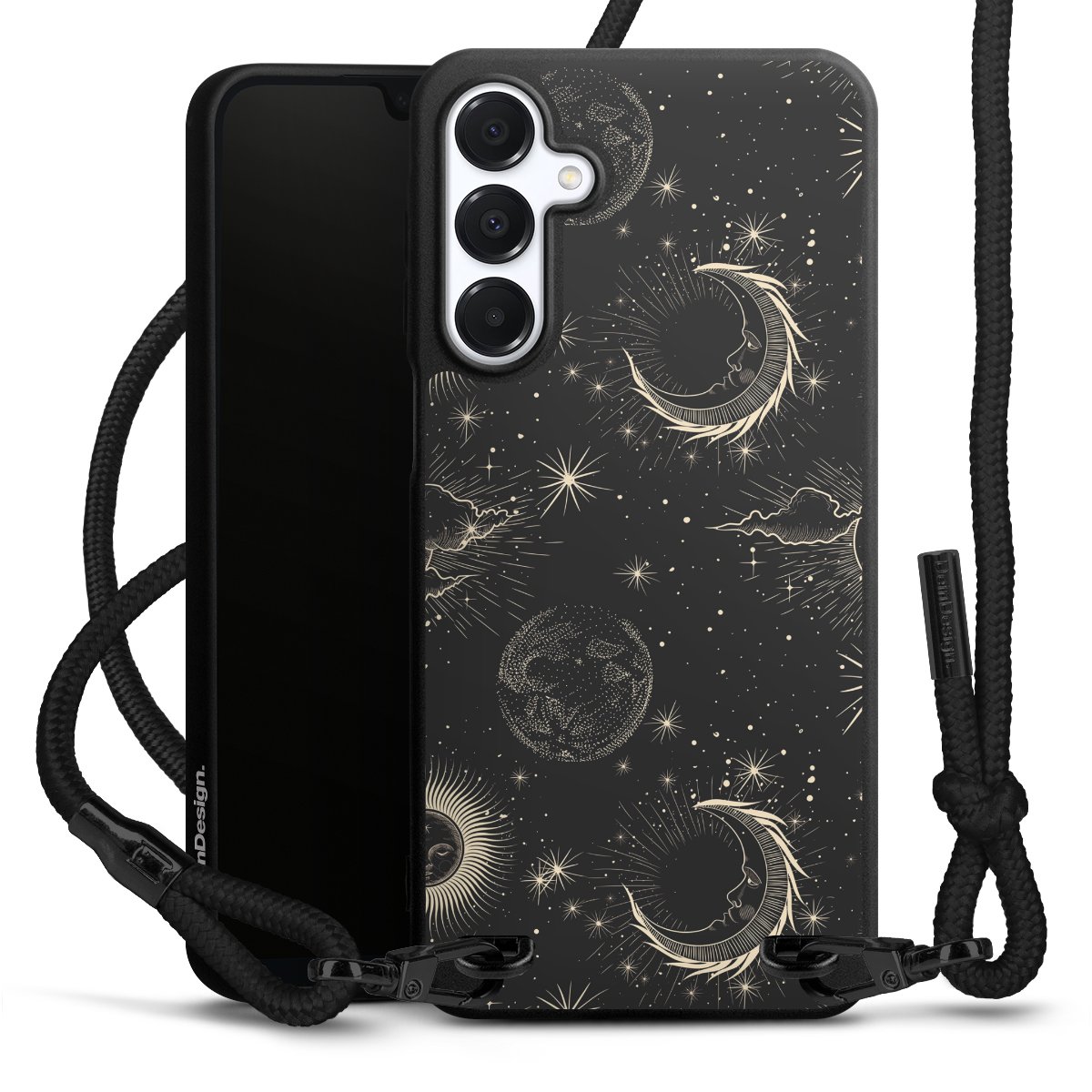 We use the solid direct print process for this phone case, which is why the print area only covers the back and the edge remains unprinted. The case to wear around your neck can be ordered unprinted, fully printed, or partially printed. For your design, either choose one of our exclusive shop motifs or get creative and create your own design, for example with photos and overlays. Design your own personal trend accessory and make an individual statement on the streets!