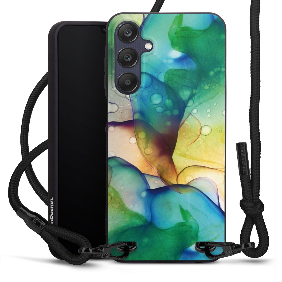 We use the solid direct print process for this phone case, which is why the print area only covers the back and the edge remains unprinted. The case to wear around your neck can be ordered unprinted, fully printed, or partially printed. For your design, either choose one of our exclusive shop motifs or get creative and create your own design, for example with photos and overlays. Design your own personal trend accessory and make an individual statement on the streets!