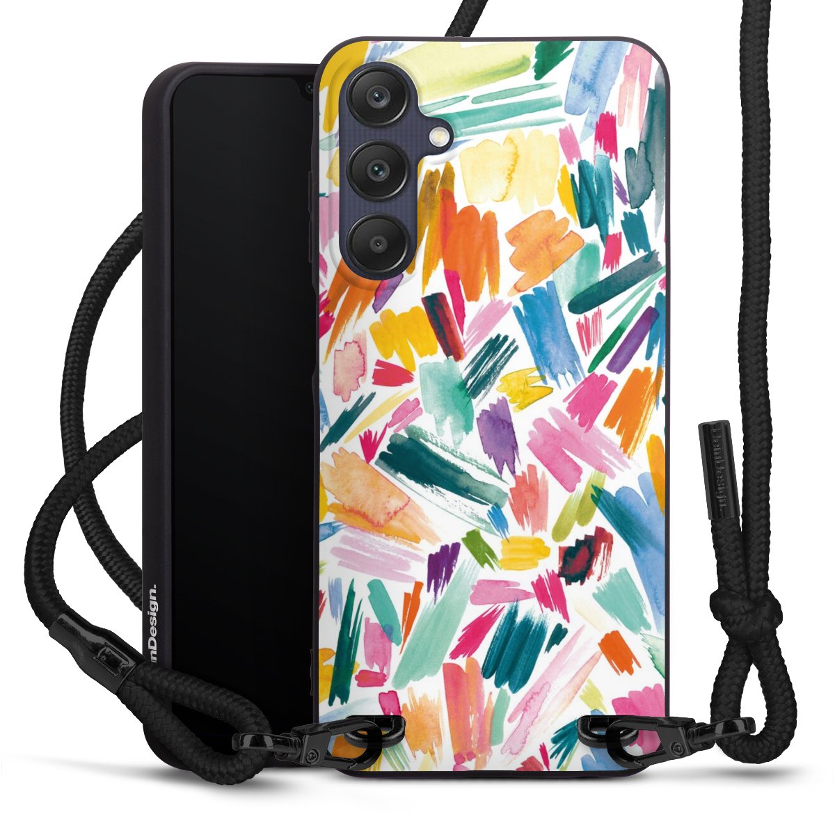We use the solid direct print process for this phone case, which is why the print area only covers the back and the edge remains unprinted. The case to wear around your neck can be ordered unprinted, fully printed, or partially printed. For your design, either choose one of our exclusive shop motifs or get creative and create your own design, for example with photos and overlays. Design your own personal trend accessory and make an individual statement on the streets!