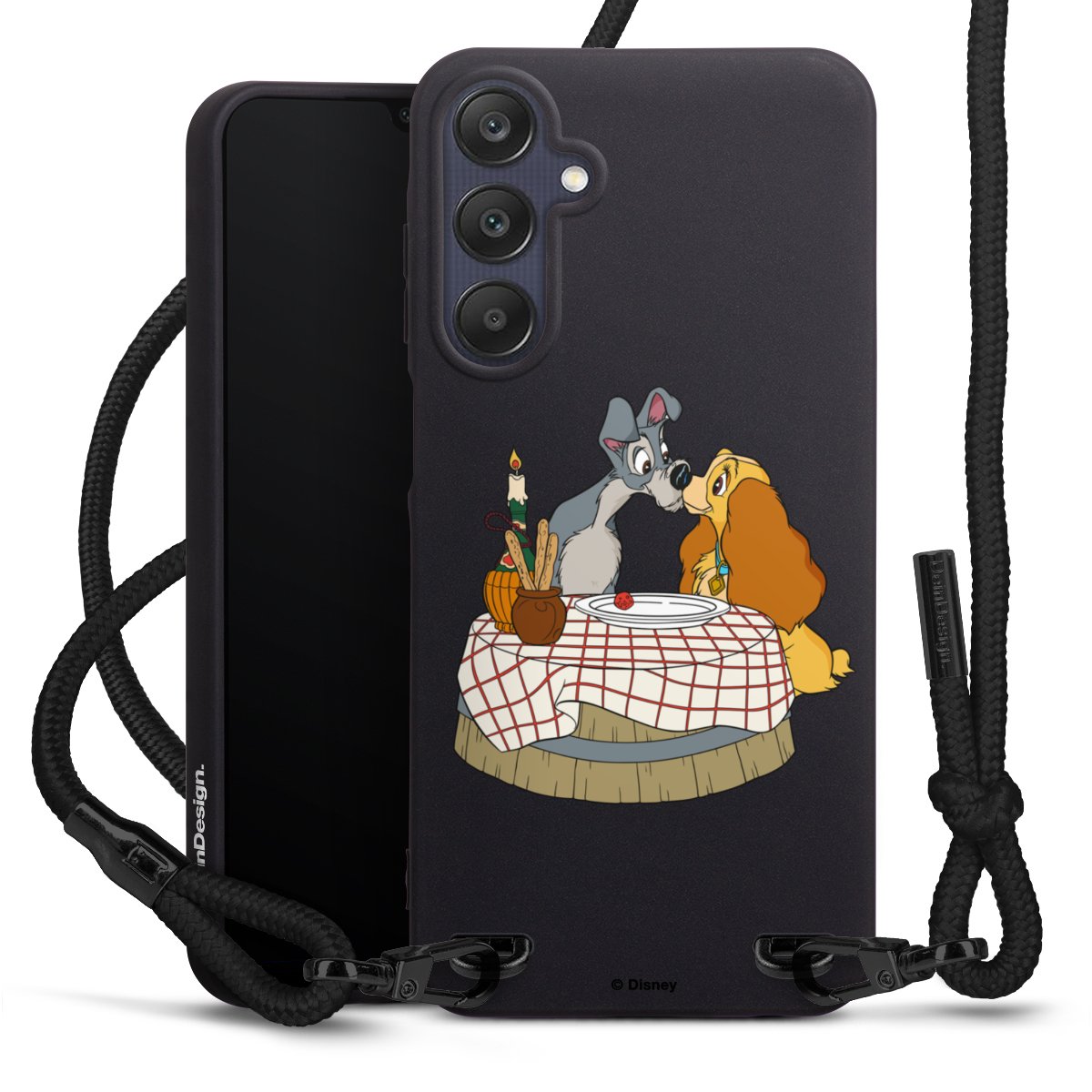 The matt black silicone case is made of flexible TPU (thermoplastic polyurethane) and offers robust protection. The durable, unbreakable material makes the cover flexible and dimensionally stable at the same time. The matte surface makes your design stand out more and is less susceptible to fingerprints and dirt. The stylish trend accessory fits comfortably in the hand and is perfectly complemented by the fabric (polyester) mobile phone strap. The braided fabric strap is approx. 1.70 metres long with a diameter of approx. 0.5 cm. Due to the special knotting technique, the length of the strap can be adjusted by simply pulling it, so that you can adapt it individually to your wishes. The practical case to wear around your neck is available with the fabric strap in black. As a little icing on the cake, we have provided the strap with a chic metal fastener in matt black. The strap is securely fastened to the case with loops made of high-quality genuine leather and press studs. The ends of the fabric strap are covered with metallic end caps and thus protected from fraying.