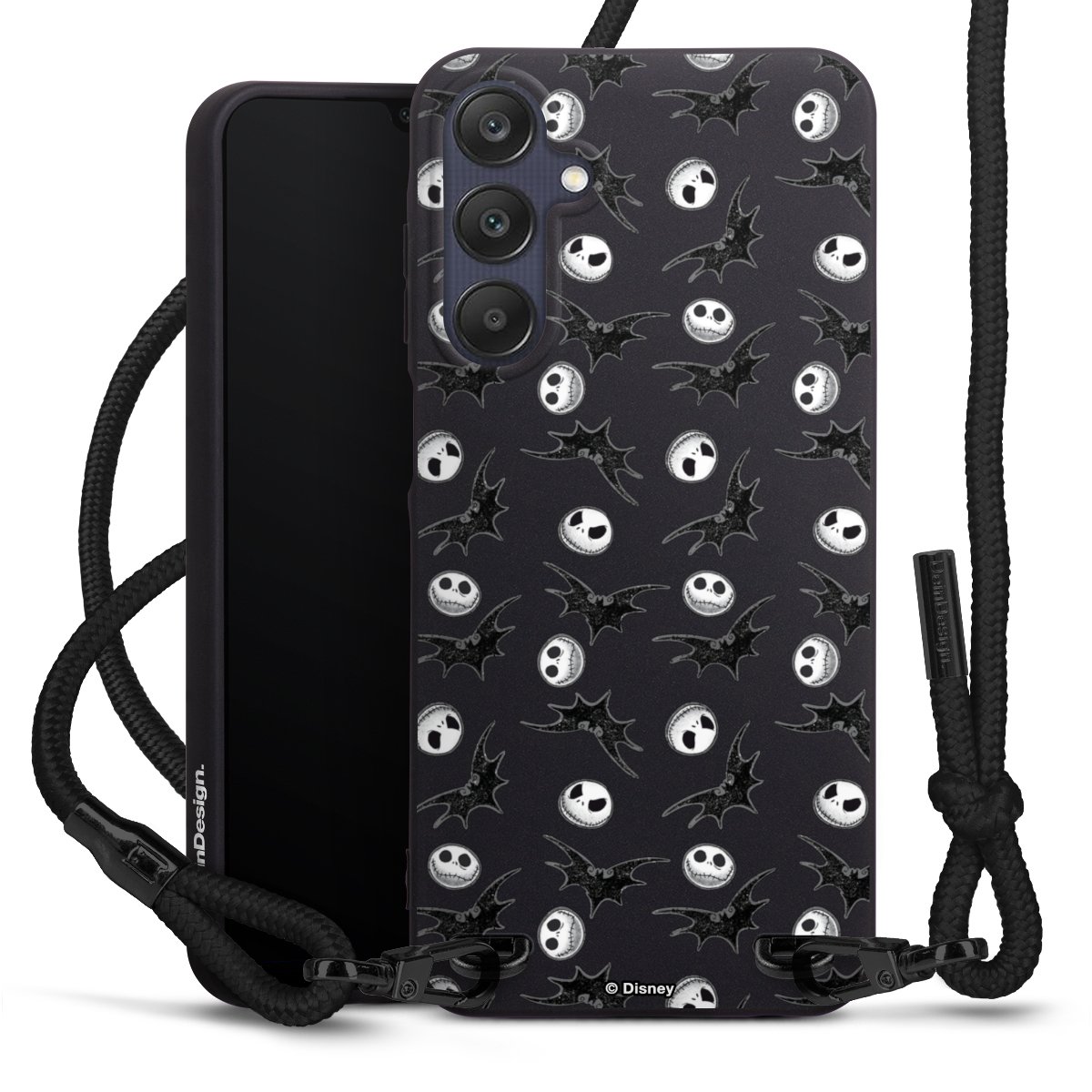 Pure Black: Phone case, fabric strap and metal details in stylish matt black.