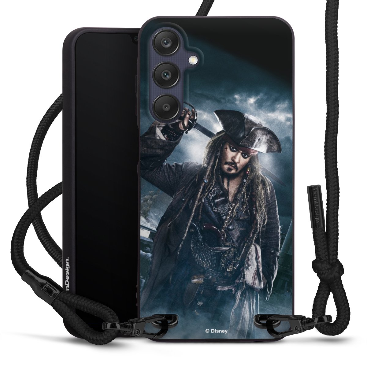 Pure Black: Phone case, fabric strap and metal details in stylish matt black.
