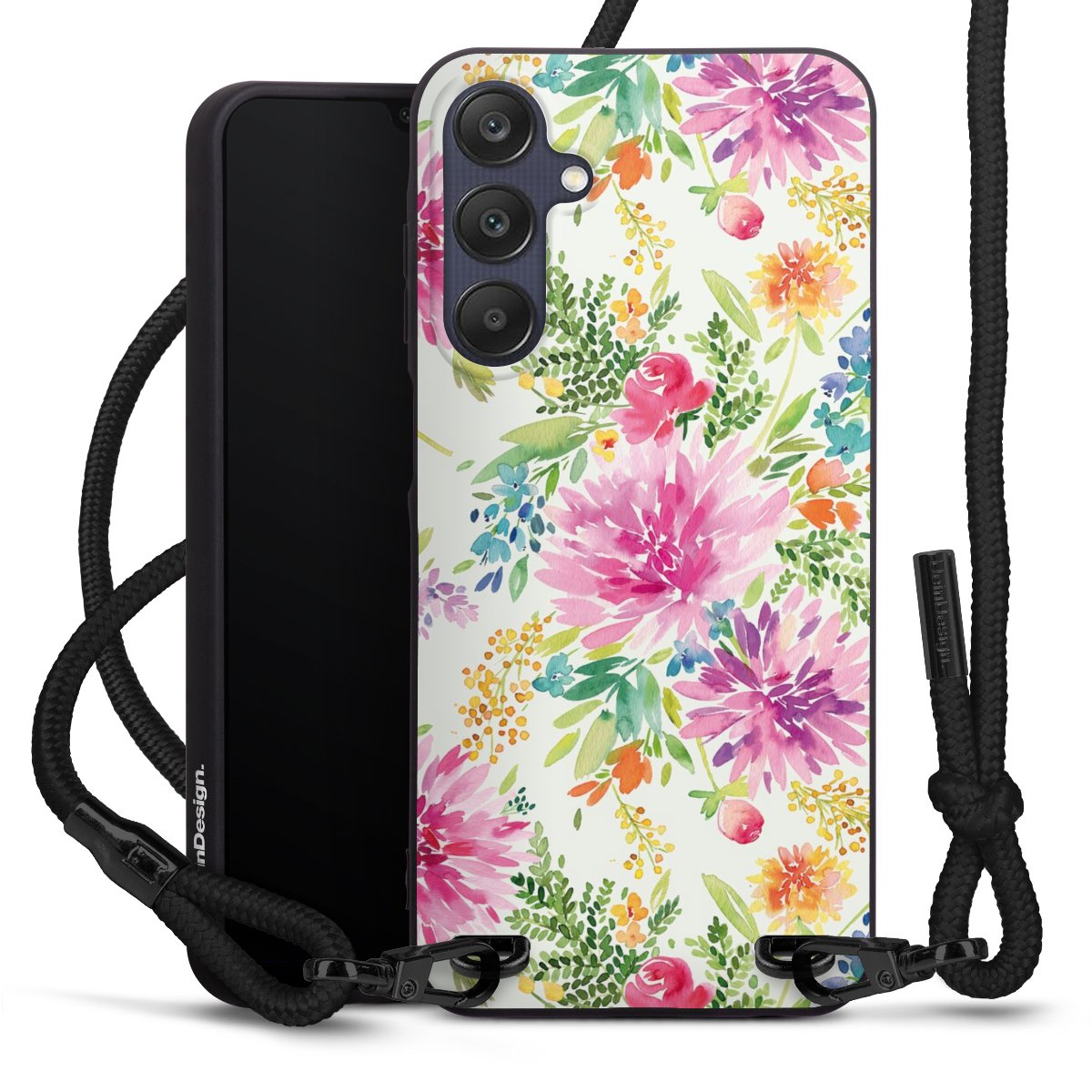 We use the solid direct print process for this phone case, which is why the print area only covers the back and the edge remains unprinted. The case to wear around your neck can be ordered unprinted, fully printed, or partially printed. For your design, either choose one of our exclusive shop motifs or get creative and create your own design, for example with photos and overlays. Design your own personal trend accessory and make an individual statement on the streets!
