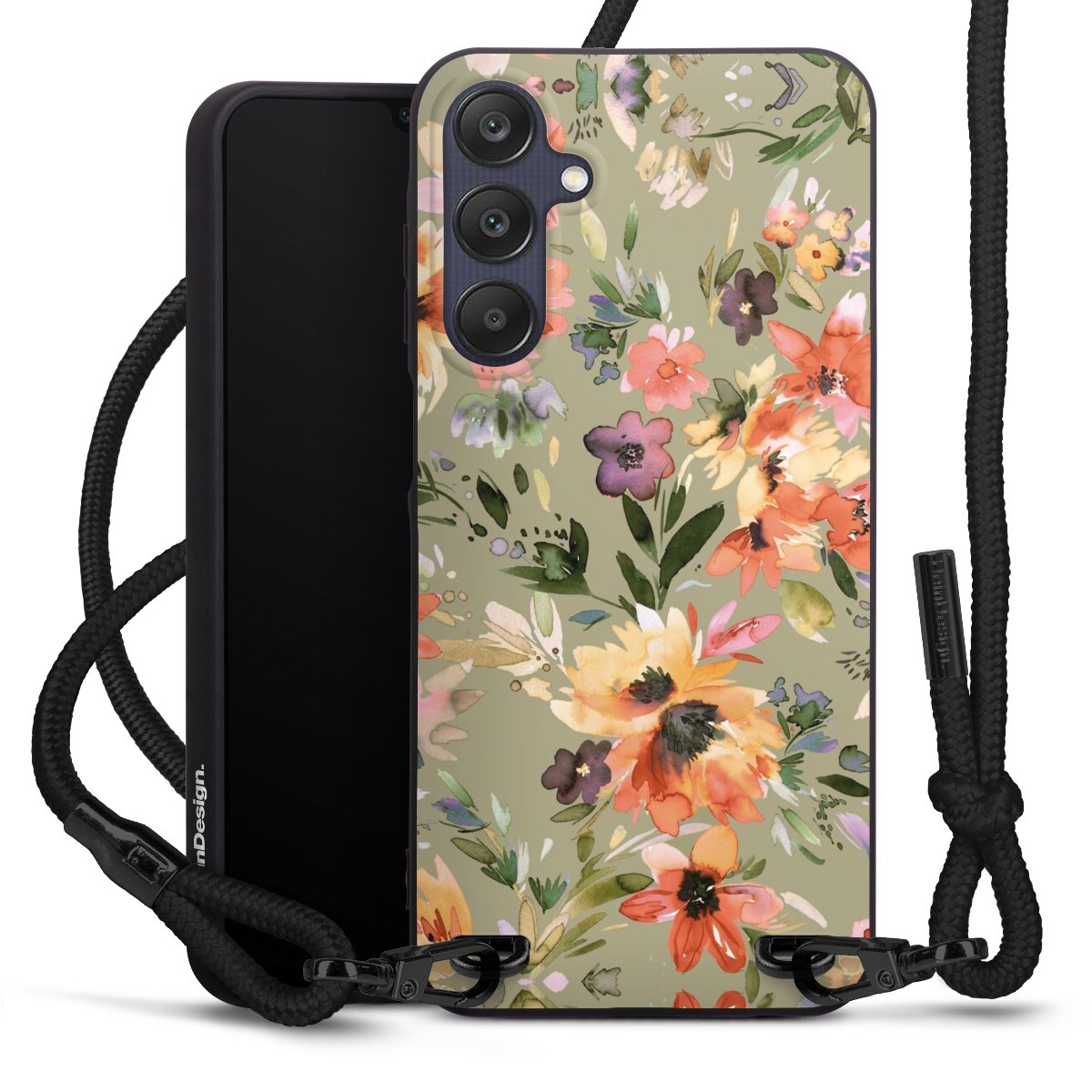 We use the solid direct print process for this phone case, which is why the print area only covers the back and the edge remains unprinted. The case to wear around your neck can be ordered unprinted, fully printed, or partially printed. For your design, either choose one of our exclusive shop motifs or get creative and create your own design, for example with photos and overlays. Design your own personal trend accessory and make an individual statement on the streets!