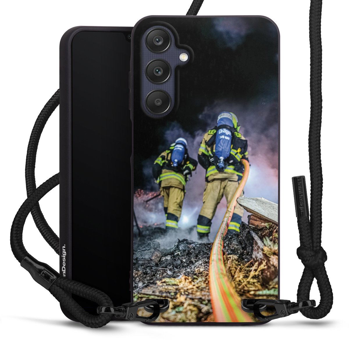 The matt black silicone case is made of flexible TPU (thermoplastic polyurethane) and offers robust protection. The durable, unbreakable material makes the cover flexible and dimensionally stable at the same time. The matte surface makes your design stand out more and is less susceptible to fingerprints and dirt. The stylish trend accessory fits comfortably in the hand and is perfectly complemented by the fabric (polyester) mobile phone strap. The braided fabric strap is approx. 1.70 metres long with a diameter of approx. 0.5 cm. Due to the special knotting technique, the length of the strap can be adjusted by simply pulling it, so that you can adapt it individually to your wishes. The practical case to wear around your neck is available with the fabric strap in black. As a little icing on the cake, we have provided the strap with a chic metal fastener in matt black. The strap is securely fastened to the case with loops made of high-quality genuine leather and press studs. The ends of the fabric strap are covered with metallic end caps and thus protected from fraying.