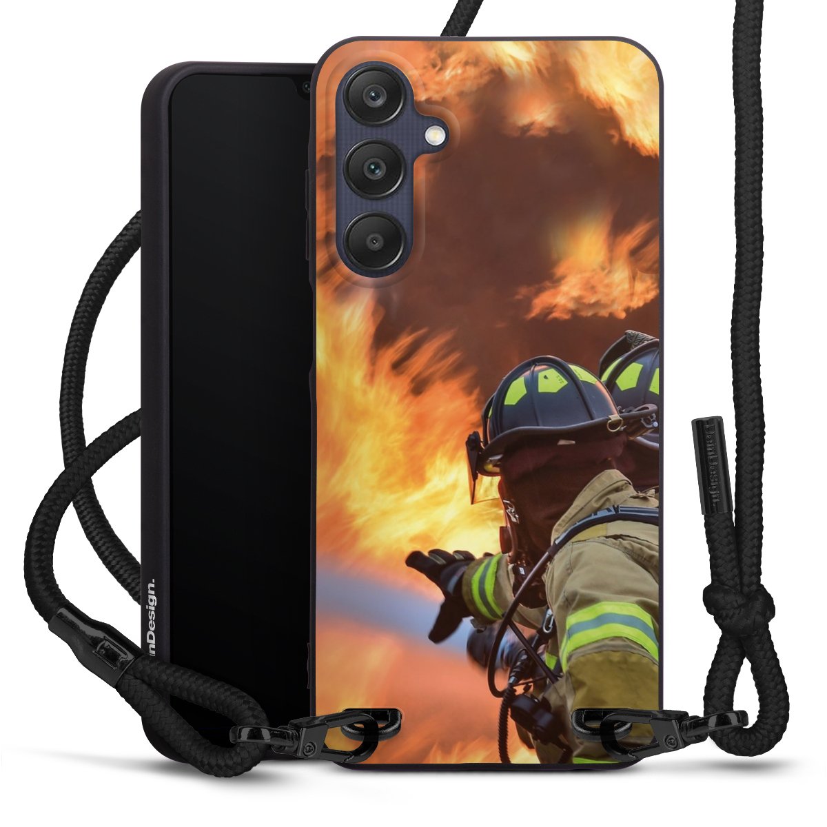 The matt black silicone case is made of flexible TPU (thermoplastic polyurethane) and offers robust protection. The durable, unbreakable material makes the cover flexible and dimensionally stable at the same time. The matte surface makes your design stand out more and is less susceptible to fingerprints and dirt. The stylish trend accessory fits comfortably in the hand and is perfectly complemented by the fabric (polyester) mobile phone strap. The braided fabric strap is approx. 1.70 metres long with a diameter of approx. 0.5 cm. Due to the special knotting technique, the length of the strap can be adjusted by simply pulling it, so that you can adapt it individually to your wishes. The practical case to wear around your neck is available with the fabric strap in black. As a little icing on the cake, we have provided the strap with a chic metal fastener in matt black. The strap is securely fastened to the case with loops made of high-quality genuine leather and press studs. The ends of the fabric strap are covered with metallic end caps and thus protected from fraying.
