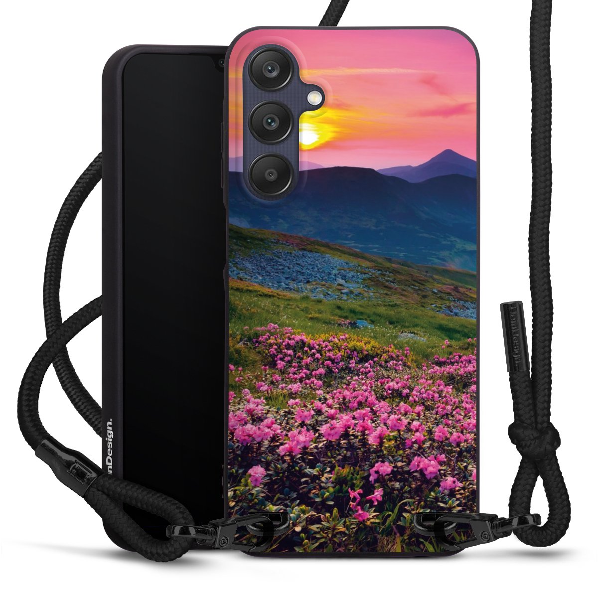 We use the solid direct print process for this phone case, which is why the print area only covers the back and the edge remains unprinted. The case to wear around your neck can be ordered unprinted, fully printed, or partially printed. For your design, either choose one of our exclusive shop motifs or get creative and create your own design, for example with photos and overlays. Design your own personal trend accessory and make an individual statement on the streets!