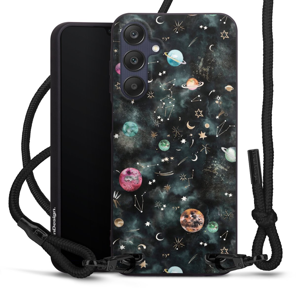 We use the solid direct print process for this phone case, which is why the print area only covers the back and the edge remains unprinted. The case to wear around your neck can be ordered unprinted, fully printed, or partially printed. For your design, either choose one of our exclusive shop motifs or get creative and create your own design, for example with photos and overlays. Design your own personal trend accessory and make an individual statement on the streets!