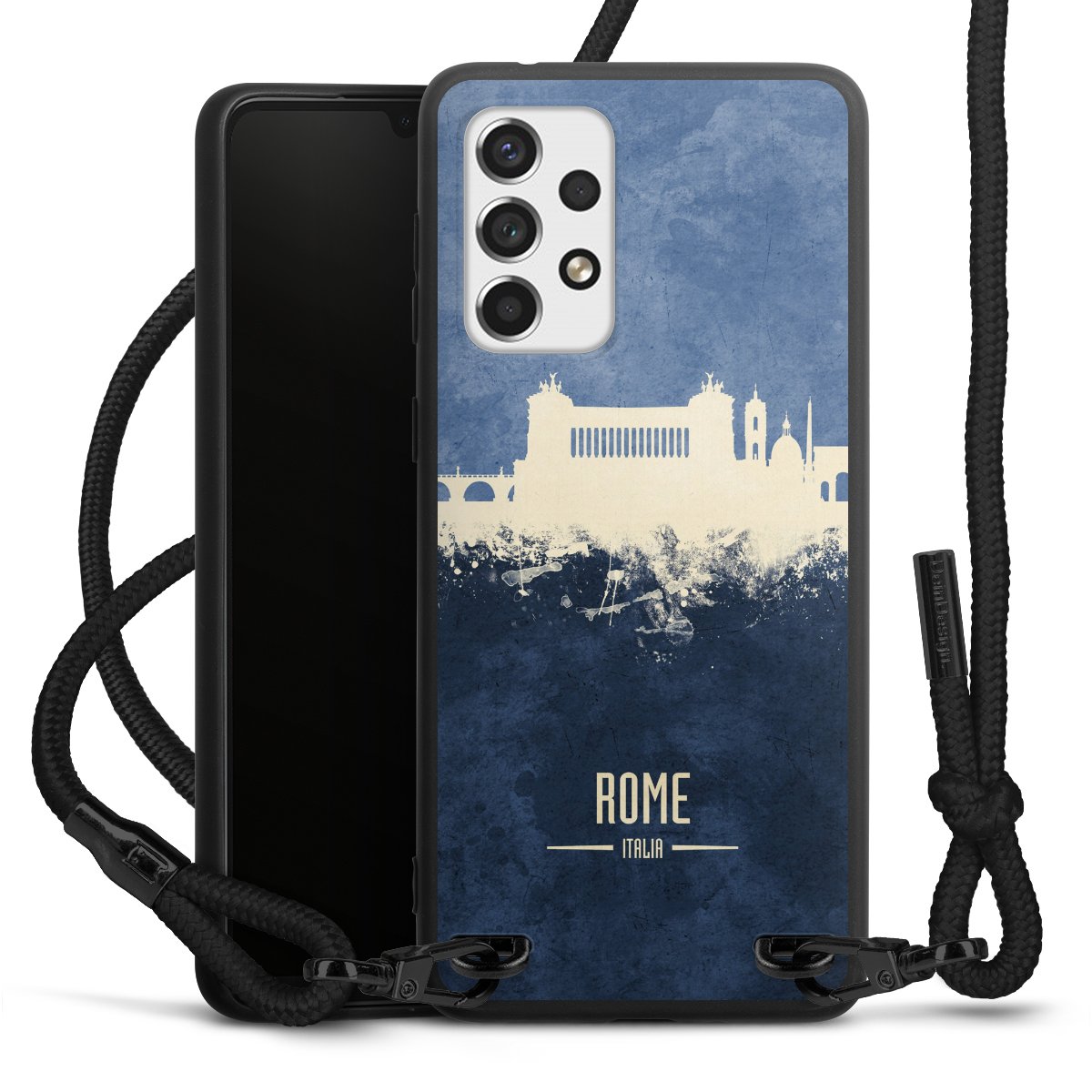 We use the solid direct print process for this phone case, which is why the print area only covers the back and the edge remains unprinted. The case to wear around your neck can be ordered unprinted, fully printed, or partially printed. For your design, either choose one of our exclusive shop motifs or get creative and create your own design, for example with photos and overlays. Design your own personal trend accessory and make an individual statement on the streets!