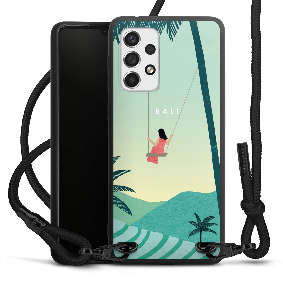 We use the solid direct print process for this phone case, which is why the print area only covers the back and the edge remains unprinted. The case to wear around your neck can be ordered unprinted, fully printed, or partially printed. For your design, either choose one of our exclusive shop motifs or get creative and create your own design, for example with photos and overlays. Design your own personal trend accessory and make an individual statement on the streets!