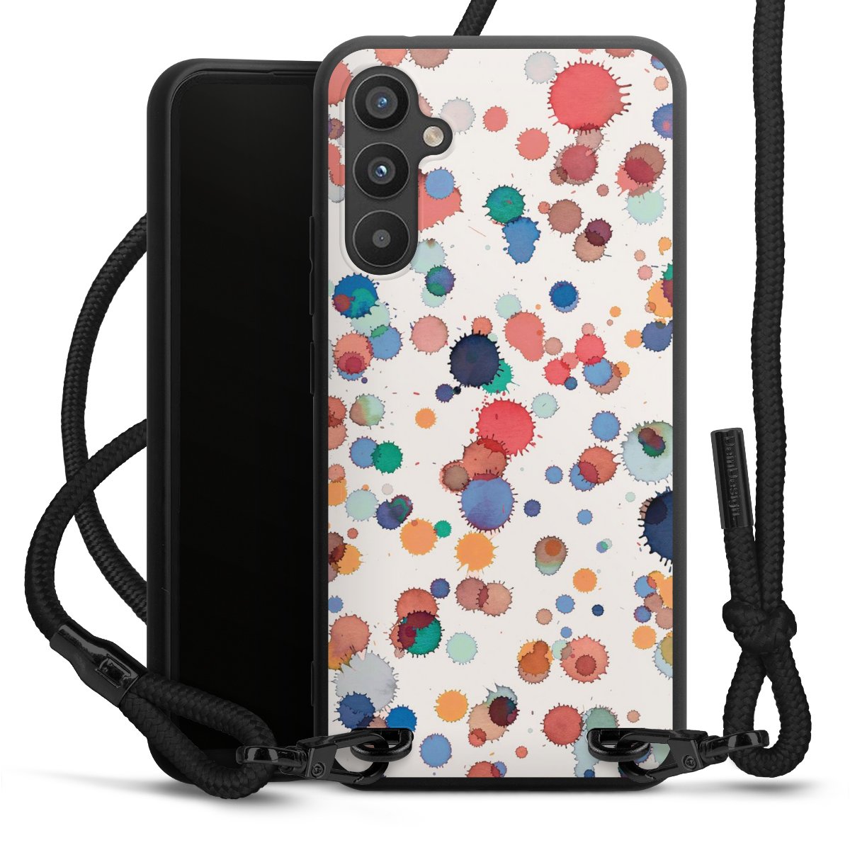 We use the solid direct print process for this phone case, which is why the print area only covers the back and the edge remains unprinted. The case to wear around your neck can be ordered unprinted, fully printed, or partially printed. For your design, either choose one of our exclusive shop motifs or get creative and create your own design, for example with photos and overlays. Design your own personal trend accessory and make an individual statement on the streets!