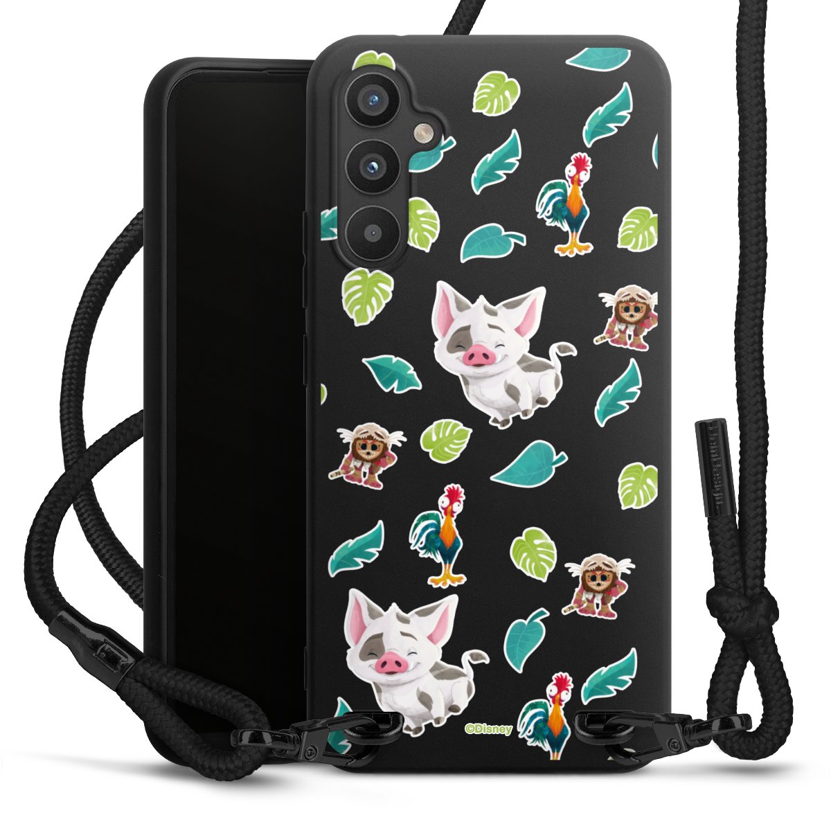 The matt black silicone case is made of flexible TPU (thermoplastic polyurethane) and offers robust protection. The durable, unbreakable material makes the cover flexible and dimensionally stable at the same time. The matte surface makes your design stand out more and is less susceptible to fingerprints and dirt. The stylish trend accessory fits comfortably in the hand and is perfectly complemented by the fabric (polyester) mobile phone strap. The braided fabric strap is approx. 1.70 metres long with a diameter of approx. 0.5 cm. Due to the special knotting technique, the length of the strap can be adjusted by simply pulling it, so that you can adapt it individually to your wishes. The practical case to wear around your neck is available with the fabric strap in black. As a little icing on the cake, we have provided the strap with a chic metal fastener in matt black. The strap is securely fastened to the case with loops made of high-quality genuine leather and press studs. The ends of the fabric strap are covered with metallic end caps and thus protected from fraying.