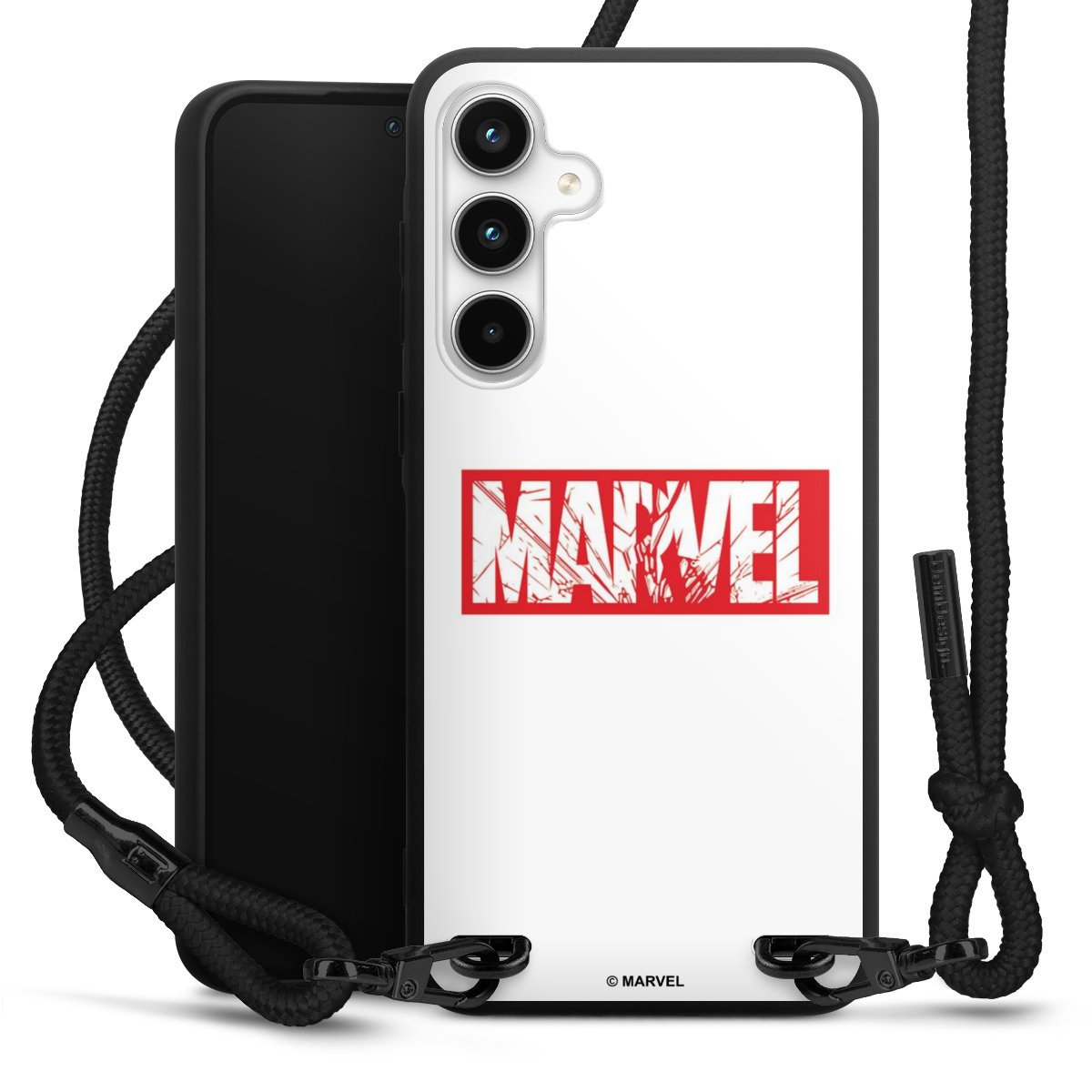 The matt black silicone case is made of flexible TPU (thermoplastic polyurethane) and offers robust protection. The durable, unbreakable material makes the cover flexible and dimensionally stable at the same time. The matte surface makes your design stand out more and is less susceptible to fingerprints and dirt. The stylish trend accessory fits comfortably in the hand and is perfectly complemented by the fabric (polyester) mobile phone strap. The braided fabric strap is approx. 1.70 metres long with a diameter of approx. 0.5 cm. Due to the special knotting technique, the length of the strap can be adjusted by simply pulling it, so that you can adapt it individually to your wishes. The practical case to wear around your neck is available with the fabric strap in black. As a little icing on the cake, we have provided the strap with a chic metal fastener in matt black. The strap is securely fastened to the case with loops made of high-quality genuine leather and press studs. The ends of the fabric strap are covered with metallic end caps and thus protected from fraying.