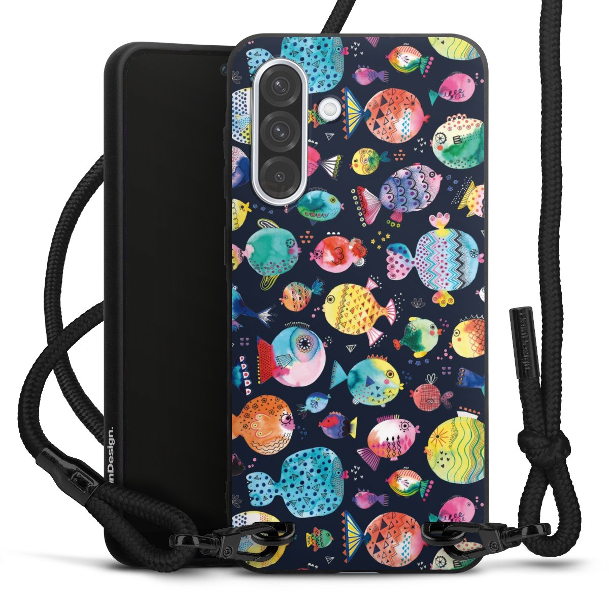 Pure Black: Phone case, fabric strap and metal details in stylish matt black.