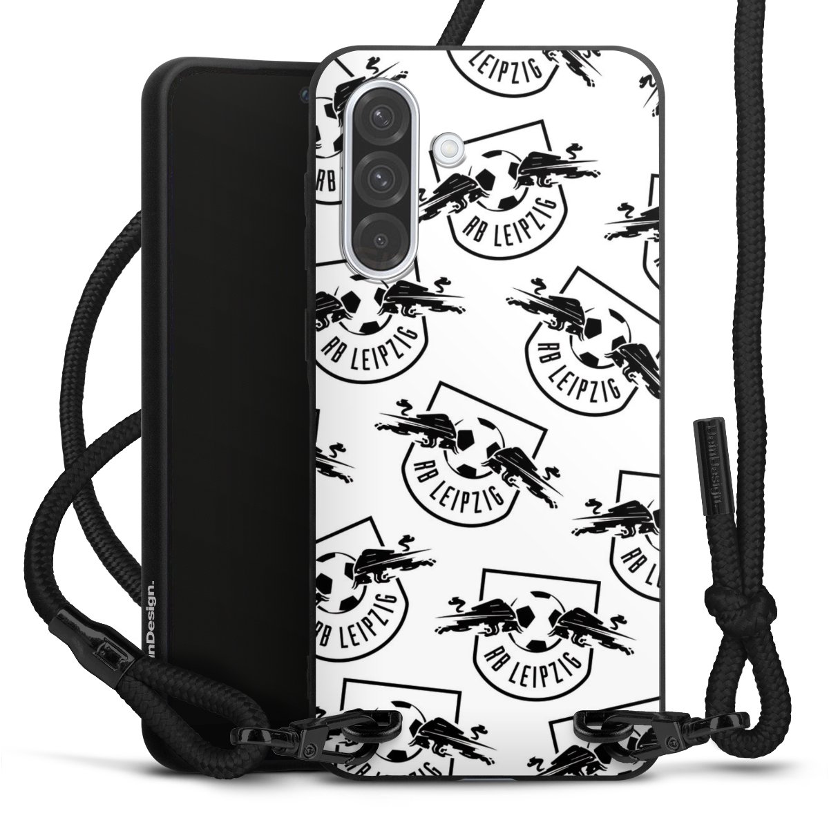 The matt black silicone case is made of flexible TPU (thermoplastic polyurethane) and offers robust protection. The durable, unbreakable material makes the cover flexible and dimensionally stable at the same time. The matte surface makes your design stand out more and is less susceptible to fingerprints and dirt. The stylish trend accessory fits comfortably in the hand and is perfectly complemented by the fabric (polyester) mobile phone strap. The braided fabric strap is approx. 1.70 metres long with a diameter of approx. 0.5 cm. Due to the special knotting technique, the length of the strap can be adjusted by simply pulling it, so that you can adapt it individually to your wishes. The practical case to wear around your neck is available with the fabric strap in black. As a little icing on the cake, we have provided the strap with a chic metal fastener in matt black. The strap is securely fastened to the case with loops made of high-quality genuine leather and press studs. The ends of the fabric strap are covered with metallic end caps and thus protected from fraying.