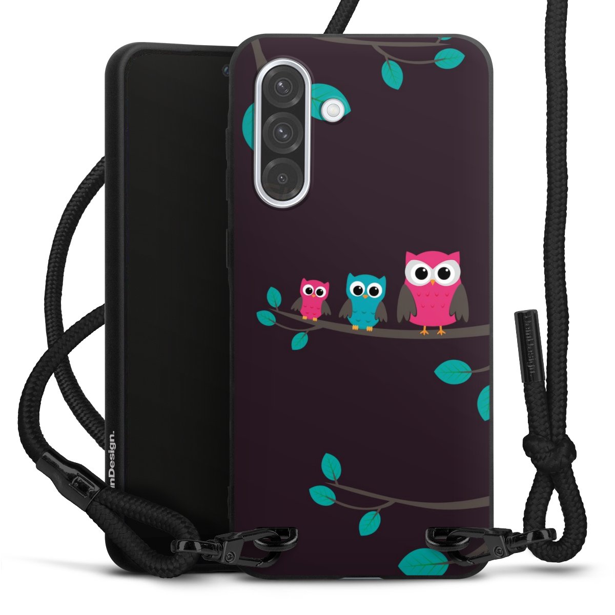 The matt black silicone case is made of flexible TPU (thermoplastic polyurethane) and offers robust protection. The durable, unbreakable material makes the cover flexible and dimensionally stable at the same time. The matte surface makes your design stand out more and is less susceptible to fingerprints and dirt. The stylish trend accessory fits comfortably in the hand and is perfectly complemented by the fabric (polyester) mobile phone strap. The braided fabric strap is approx. 1.70 metres long with a diameter of approx. 0.5 cm. Due to the special knotting technique, the length of the strap can be adjusted by simply pulling it, so that you can adapt it individually to your wishes. The practical case to wear around your neck is available with the fabric strap in black. As a little icing on the cake, we have provided the strap with a chic metal fastener in matt black. The strap is securely fastened to the case with loops made of high-quality genuine leather and press studs. The ends of the fabric strap are covered with metallic end caps and thus protected from fraying.