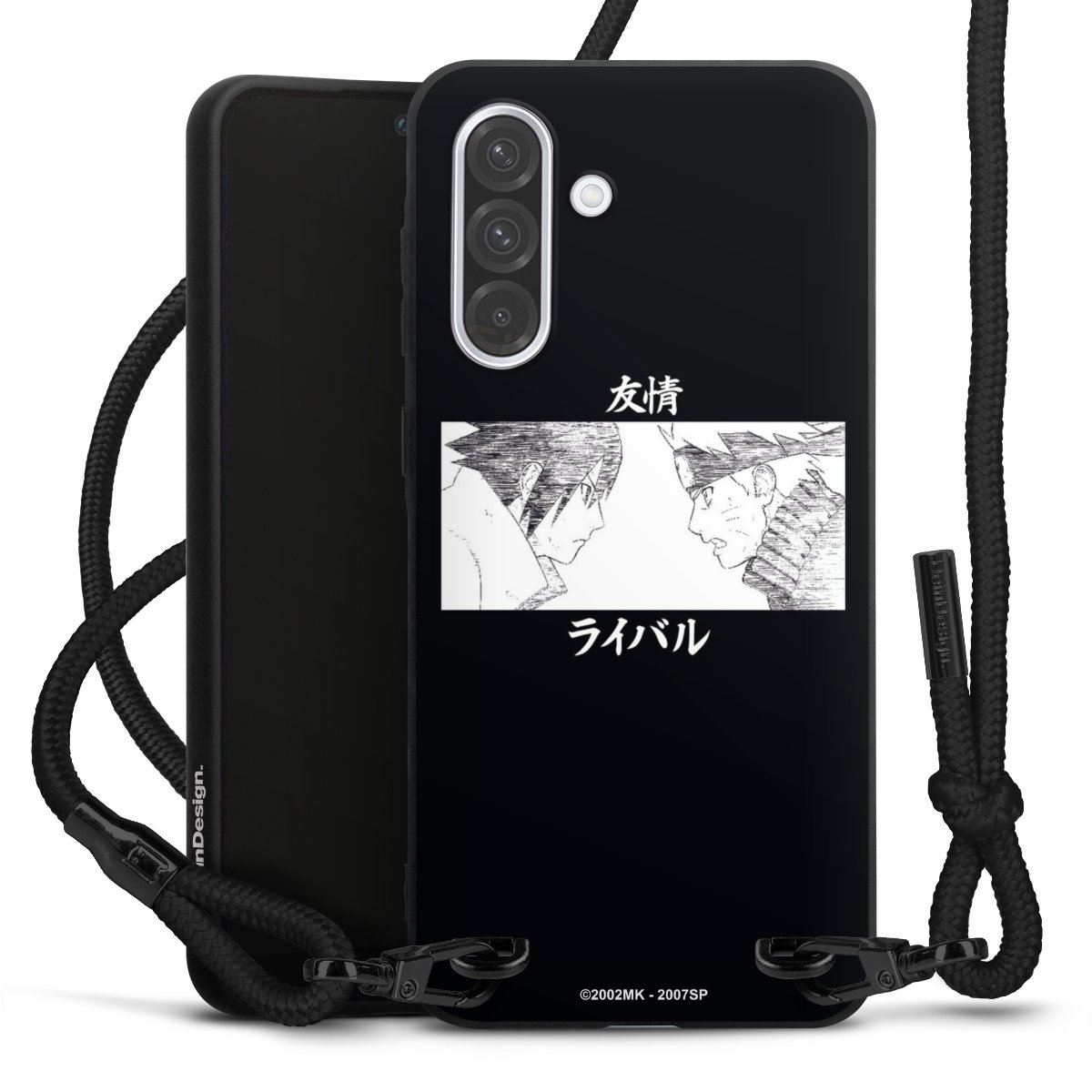 The matt black silicone case is made of flexible TPU (thermoplastic polyurethane) and offers robust protection. The durable, unbreakable material makes the cover flexible and dimensionally stable at the same time. The matte surface makes your design stand out more and is less susceptible to fingerprints and dirt. The stylish trend accessory fits comfortably in the hand and is perfectly complemented by the fabric (polyester) mobile phone strap. The braided fabric strap is approx. 1.70 metres long with a diameter of approx. 0.5 cm. Due to the special knotting technique, the length of the strap can be adjusted by simply pulling it, so that you can adapt it individually to your wishes. The practical case to wear around your neck is available with the fabric strap in black. As a little icing on the cake, we have provided the strap with a chic metal fastener in matt black. The strap is securely fastened to the case with loops made of high-quality genuine leather and press studs. The ends of the fabric strap are covered with metallic end caps and thus protected from fraying.