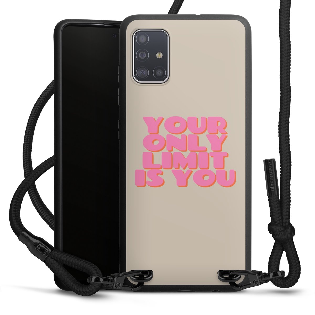 We use the solid direct print process for this phone case, which is why the print area only covers the back and the edge remains unprinted. The case to wear around your neck can be ordered unprinted, fully printed, or partially printed. For your design, either choose one of our exclusive shop motifs or get creative and create your own design, for example with photos and overlays. Design your own personal trend accessory and make an individual statement on the streets!