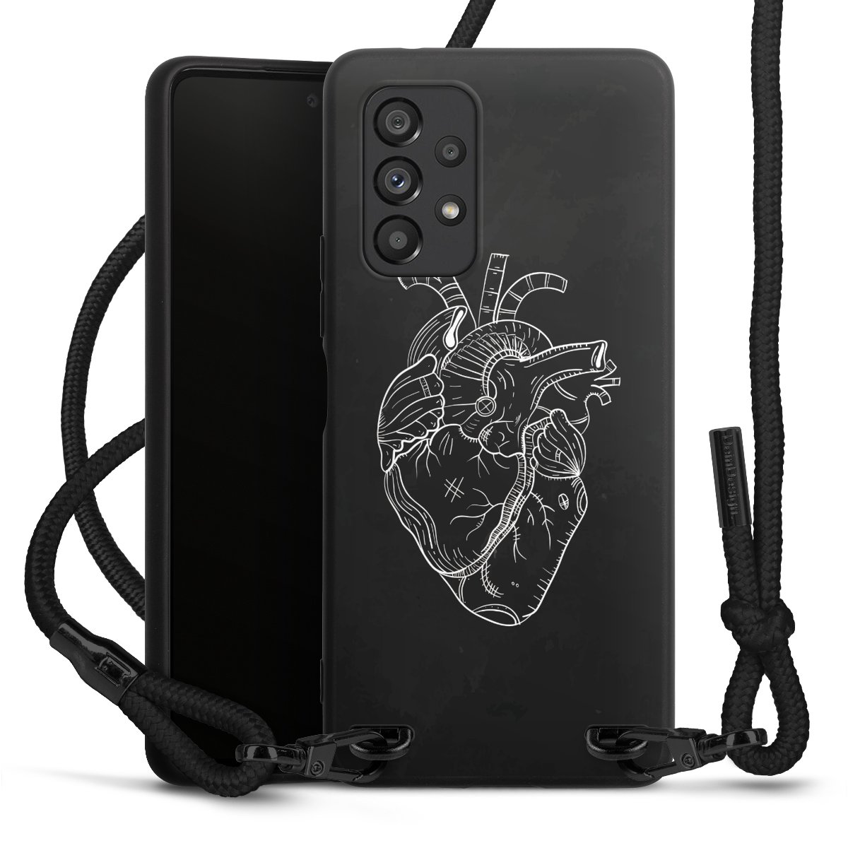 We use the solid direct print process for this phone case, which is why the print area only covers the back and the edge remains unprinted. The case to wear around your neck can be ordered unprinted, fully printed, or partially printed. For your design, either choose one of our exclusive shop motifs or get creative and create your own design, for example with photos and overlays. Design your own personal trend accessory and make an individual statement on the streets!