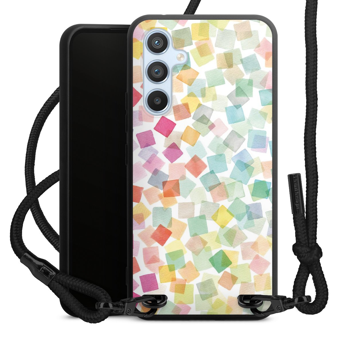 We use the solid direct print process for this phone case, which is why the print area only covers the back and the edge remains unprinted. The case to wear around your neck can be ordered unprinted, fully printed, or partially printed. For your design, either choose one of our exclusive shop motifs or get creative and create your own design, for example with photos and overlays. Design your own personal trend accessory and make an individual statement on the streets!