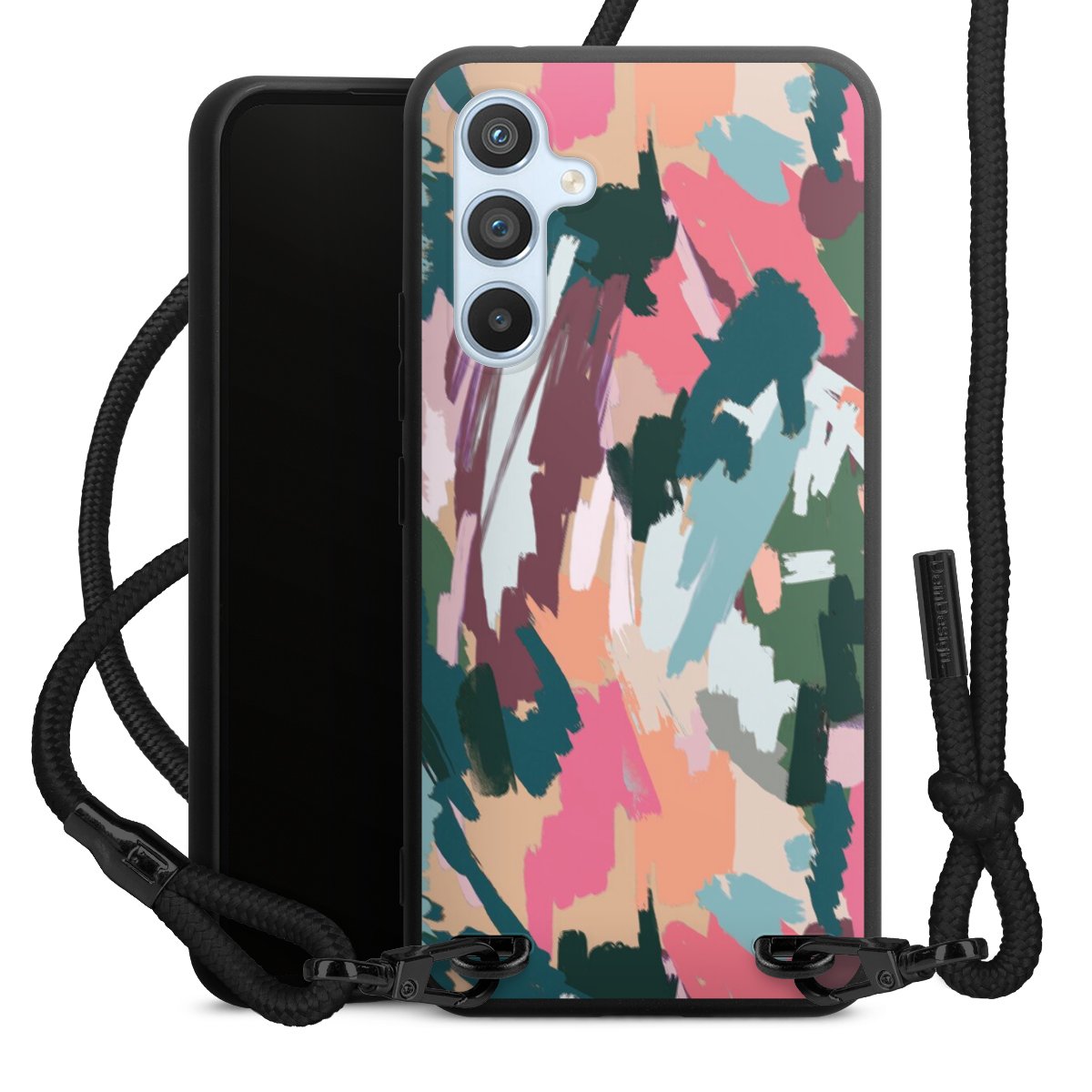 We use the solid direct print process for this phone case, which is why the print area only covers the back and the edge remains unprinted. The case to wear around your neck can be ordered unprinted, fully printed, or partially printed. For your design, either choose one of our exclusive shop motifs or get creative and create your own design, for example with photos and overlays. Design your own personal trend accessory and make an individual statement on the streets!
