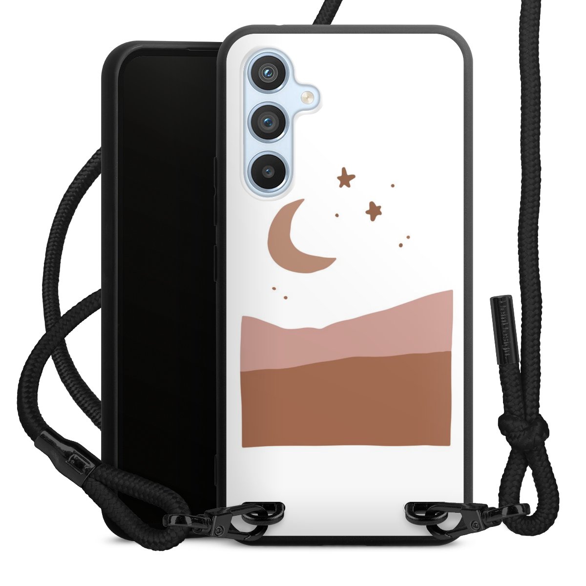 We use the solid direct print process for this phone case, which is why the print area only covers the back and the edge remains unprinted. The case to wear around your neck can be ordered unprinted, fully printed, or partially printed. For your design, either choose one of our exclusive shop motifs or get creative and create your own design, for example with photos and overlays. Design your own personal trend accessory and make an individual statement on the streets!