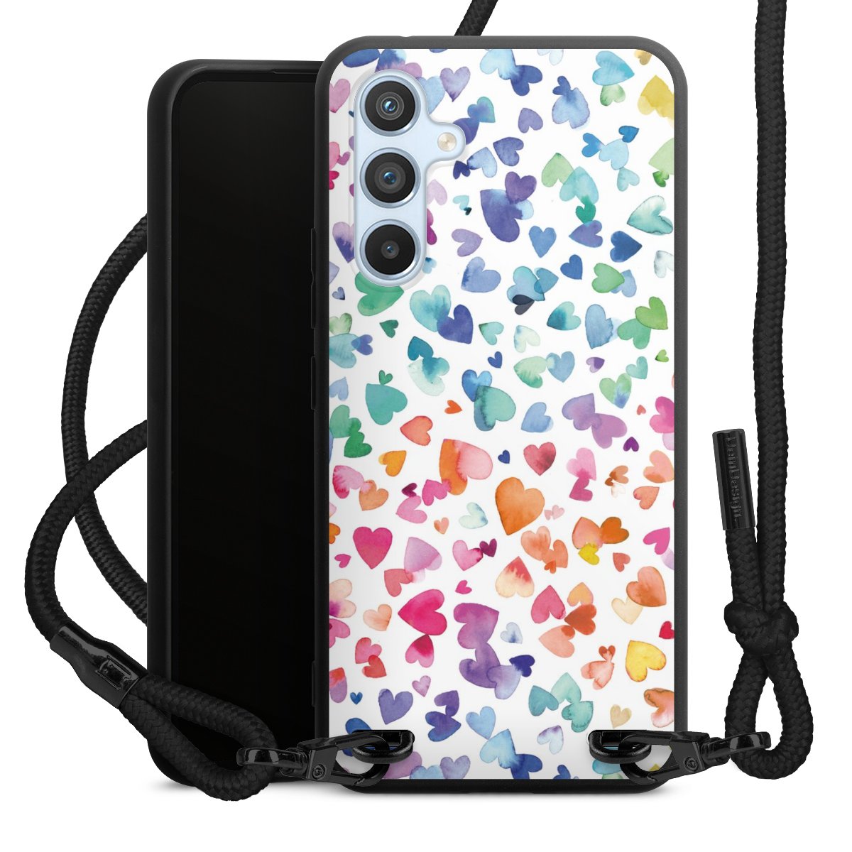 We use the solid direct print process for this phone case, which is why the print area only covers the back and the edge remains unprinted. The case to wear around your neck can be ordered unprinted, fully printed, or partially printed. For your design, either choose one of our exclusive shop motifs or get creative and create your own design, for example with photos and overlays. Design your own personal trend accessory and make an individual statement on the streets!