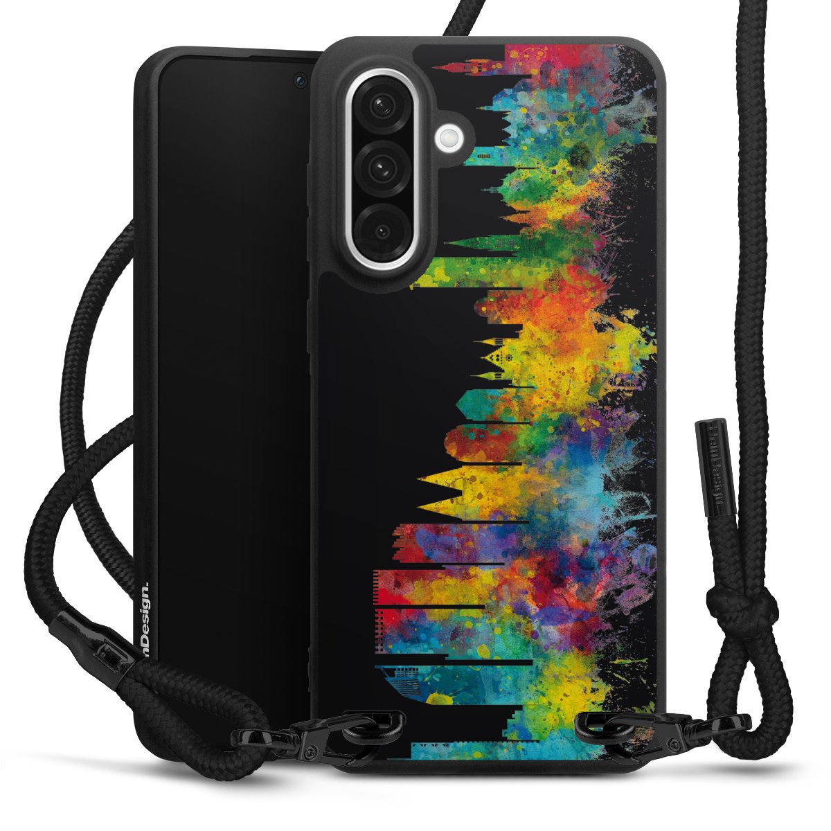 We use the solid direct print process for this phone case, which is why the print area only covers the back and the edge remains unprinted. The case to wear around your neck can be ordered unprinted, fully printed, or partially printed. For your design, either choose one of our exclusive shop motifs or get creative and create your own design, for example with photos and overlays. Design your own personal trend accessory and make an individual statement on the streets!