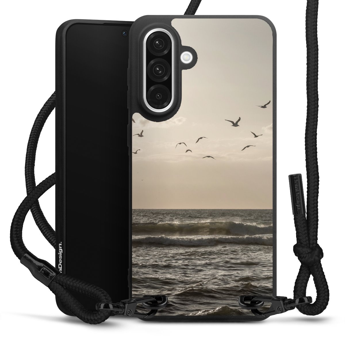 We use the solid direct print process for this phone case, which is why the print area only covers the back and the edge remains unprinted. The case to wear around your neck can be ordered unprinted, fully printed, or partially printed. For your design, either choose one of our exclusive shop motifs or get creative and create your own design, for example with photos and overlays. Design your own personal trend accessory and make an individual statement on the streets!