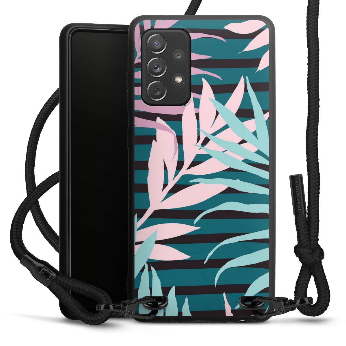 We use the solid direct print process for this phone case, which is why the print area only covers the back and the edge remains unprinted. The case to wear around your neck can be ordered unprinted, fully printed, or partially printed. For your design, either choose one of our exclusive shop motifs or get creative and create your own design, for example with photos and overlays. Design your own personal trend accessory and make an individual statement on the streets!
