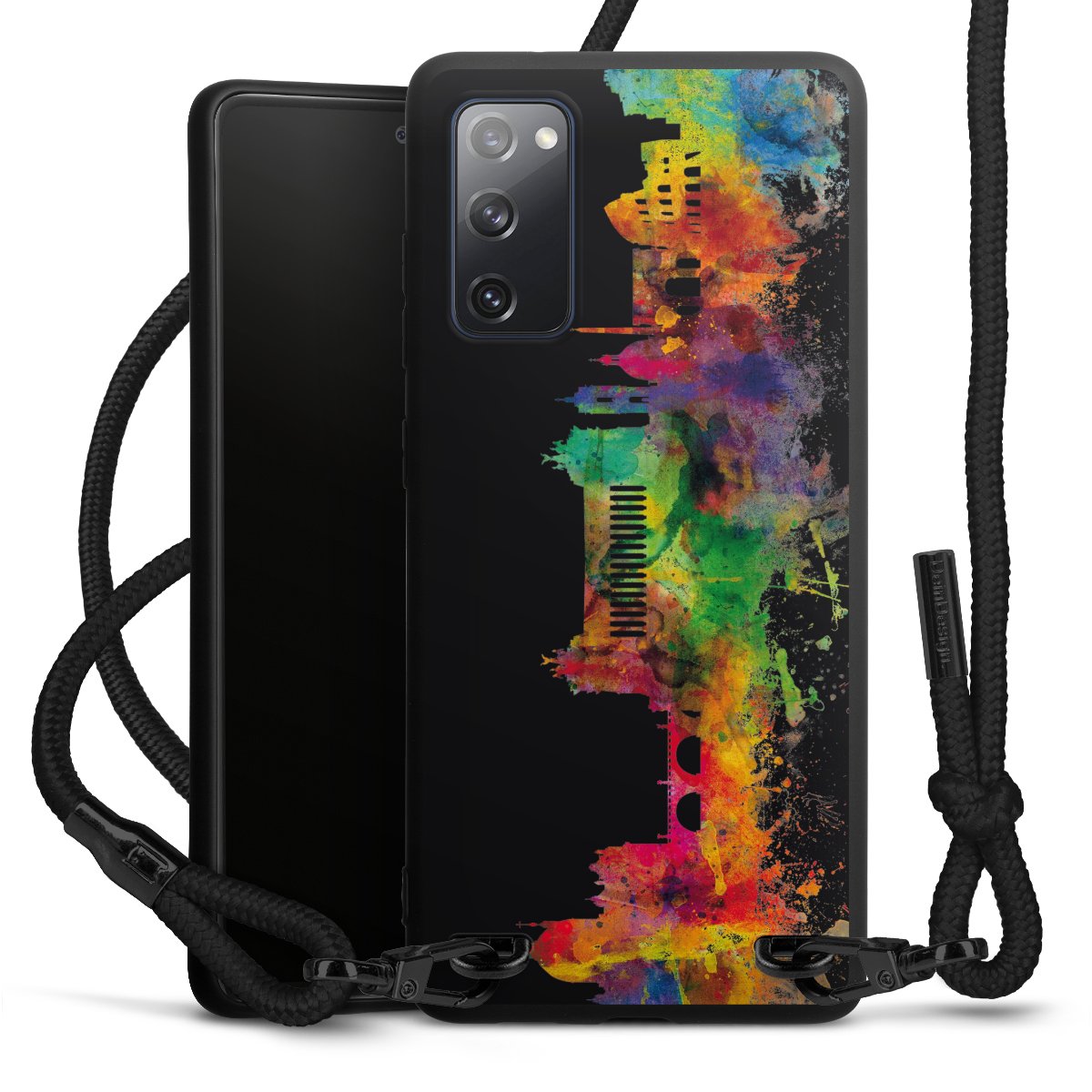 We use the solid direct print process for this phone case, which is why the print area only covers the back and the edge remains unprinted. The case to wear around your neck can be ordered unprinted, fully printed, or partially printed. For your design, either choose one of our exclusive shop motifs or get creative and create your own design, for example with photos and overlays. Design your own personal trend accessory and make an individual statement on the streets!
