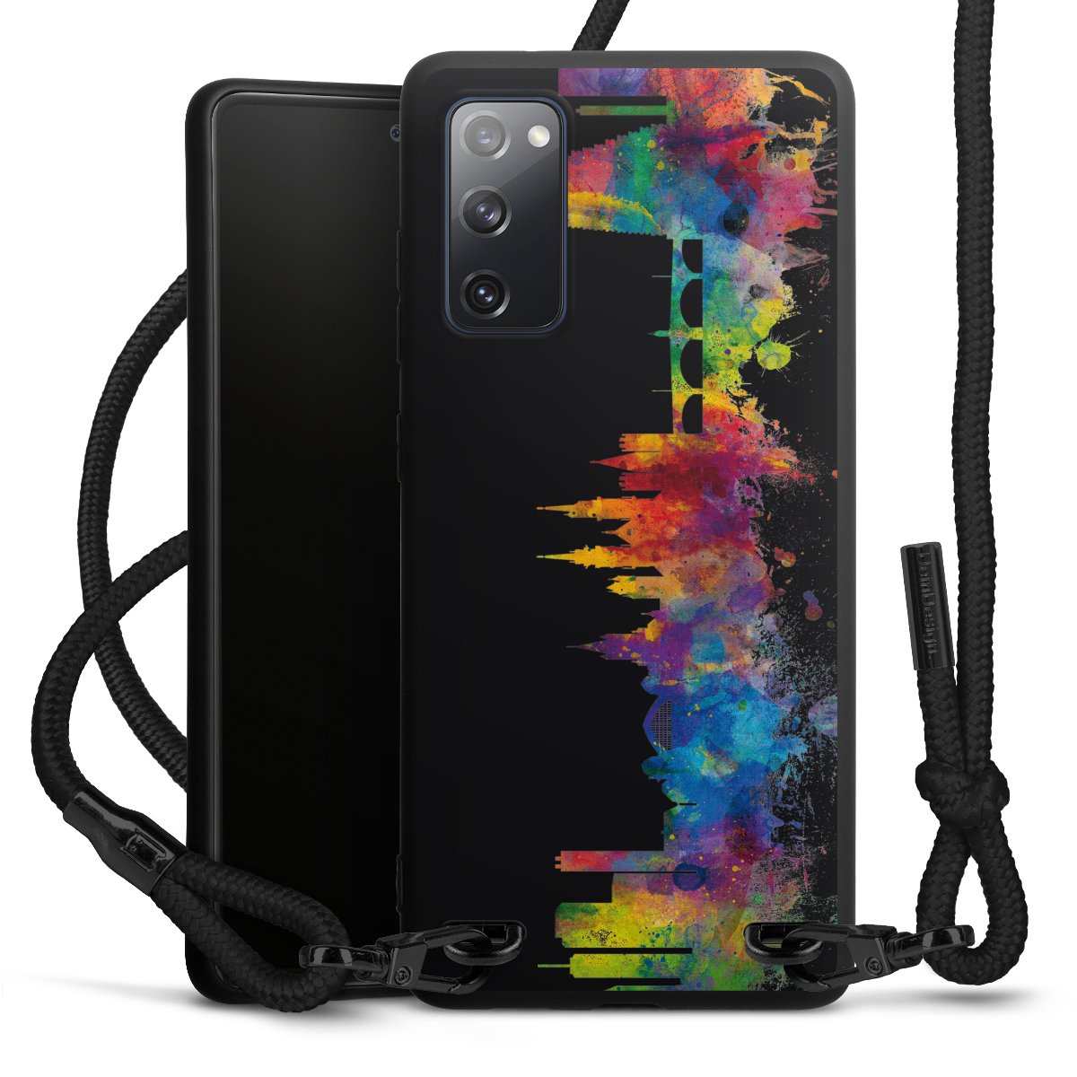 We use the solid direct print process for this phone case, which is why the print area only covers the back and the edge remains unprinted. The case to wear around your neck can be ordered unprinted, fully printed, or partially printed. For your design, either choose one of our exclusive shop motifs or get creative and create your own design, for example with photos and overlays. Design your own personal trend accessory and make an individual statement on the streets!