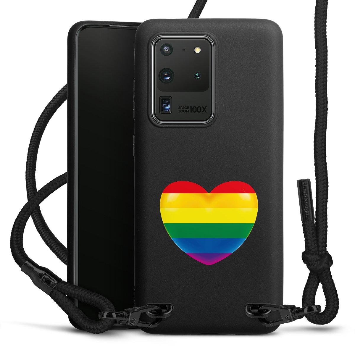 We use the solid direct print process for this phone case, which is why the print area only covers the back and the edge remains unprinted. The case to wear around your neck can be ordered unprinted, fully printed, or partially printed. For your design, either choose one of our exclusive shop motifs or get creative and create your own design, for example with photos and overlays. Design your own personal trend accessory and make an individual statement on the streets!