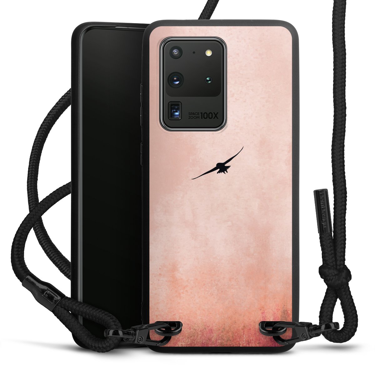 We use the solid direct print process for this phone case, which is why the print area only covers the back and the edge remains unprinted. The case to wear around your neck can be ordered unprinted, fully printed, or partially printed. For your design, either choose one of our exclusive shop motifs or get creative and create your own design, for example with photos and overlays. Design your own personal trend accessory and make an individual statement on the streets!