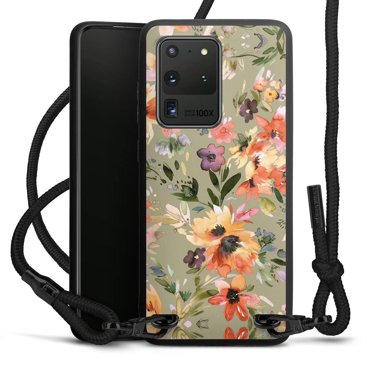 We use the solid direct print process for this phone case, which is why the print area only covers the back and the edge remains unprinted. The case to wear around your neck can be ordered unprinted, fully printed, or partially printed. For your design, either choose one of our exclusive shop motifs or get creative and create your own design, for example with photos and overlays. Design your own personal trend accessory and make an individual statement on the streets!