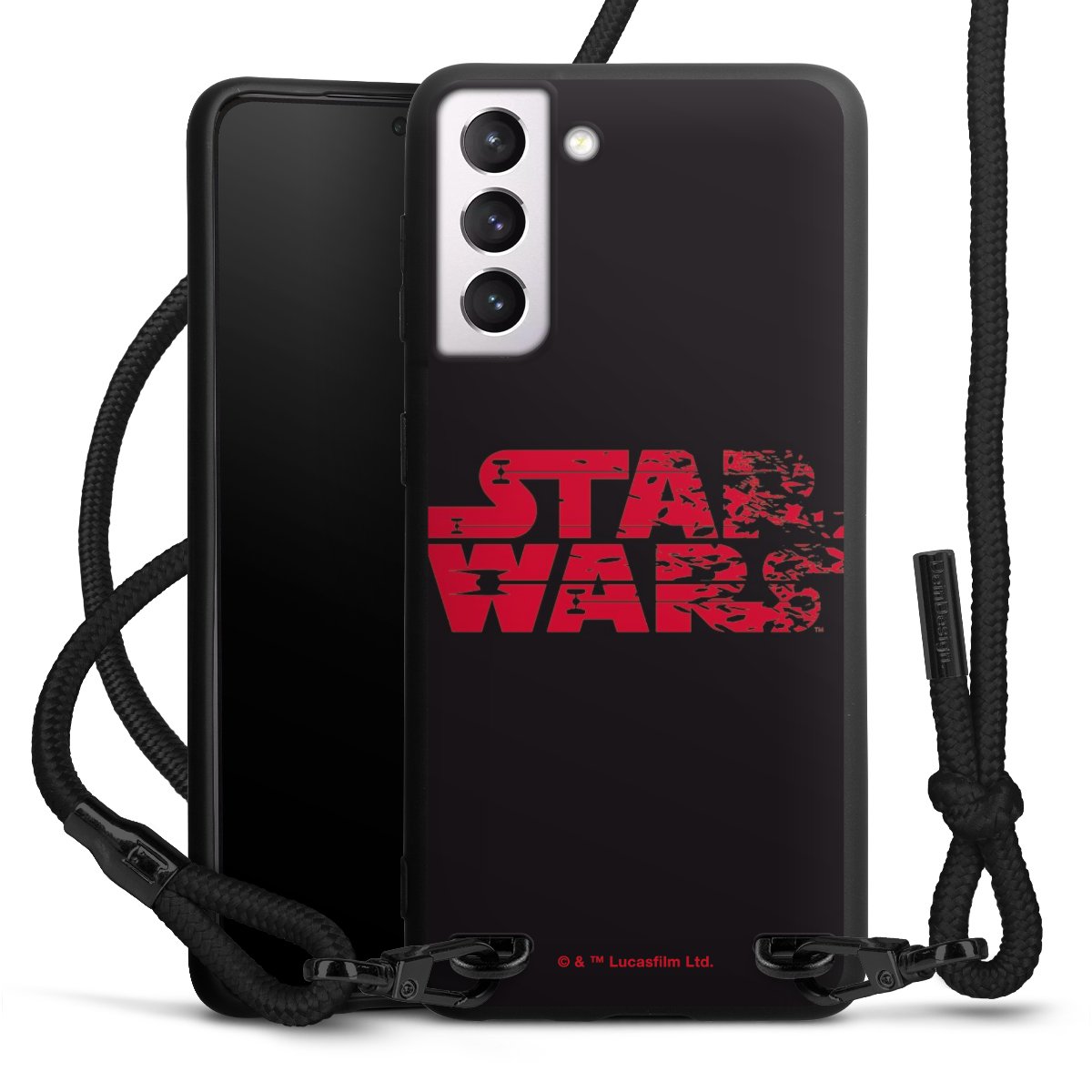 The matt black silicone case is made of flexible TPU (thermoplastic polyurethane) and offers robust protection. The durable, unbreakable material makes the cover flexible and dimensionally stable at the same time. The matte surface makes your design stand out more and is less susceptible to fingerprints and dirt. The stylish trend accessory fits comfortably in the hand and is perfectly complemented by the fabric (polyester) mobile phone strap. The braided fabric strap is approx. 1.70 metres long with a diameter of approx. 0.5 cm. Due to the special knotting technique, the length of the strap can be adjusted by simply pulling it, so that you can adapt it individually to your wishes. The practical case to wear around your neck is available with the fabric strap in black. As a little icing on the cake, we have provided the strap with a chic metal fastener in matt black. The strap is securely fastened to the case with loops made of high-quality genuine leather and press studs. The ends of the fabric strap are covered with metallic end caps and thus protected from fraying.